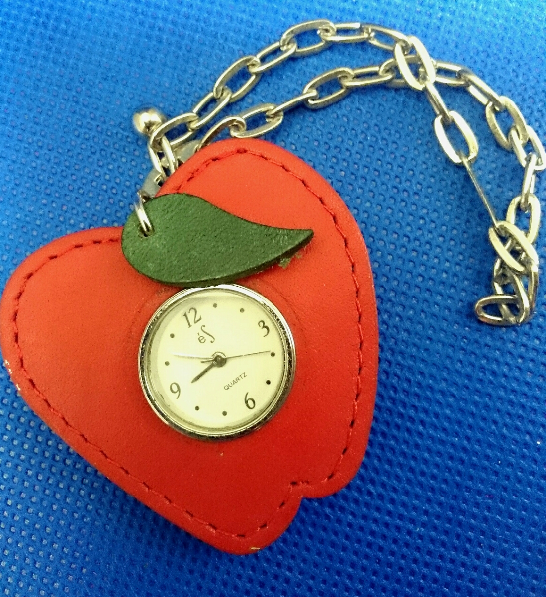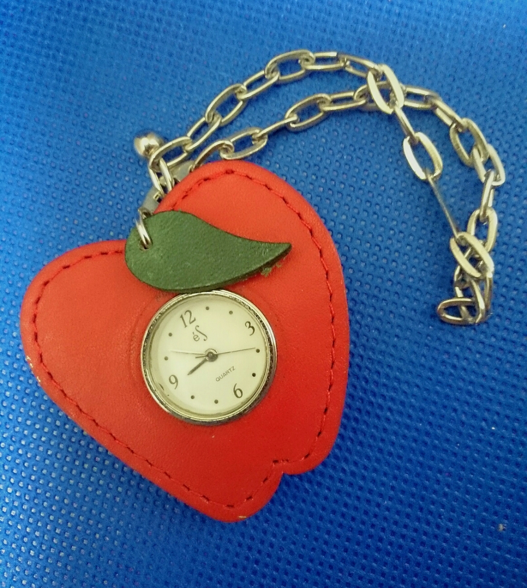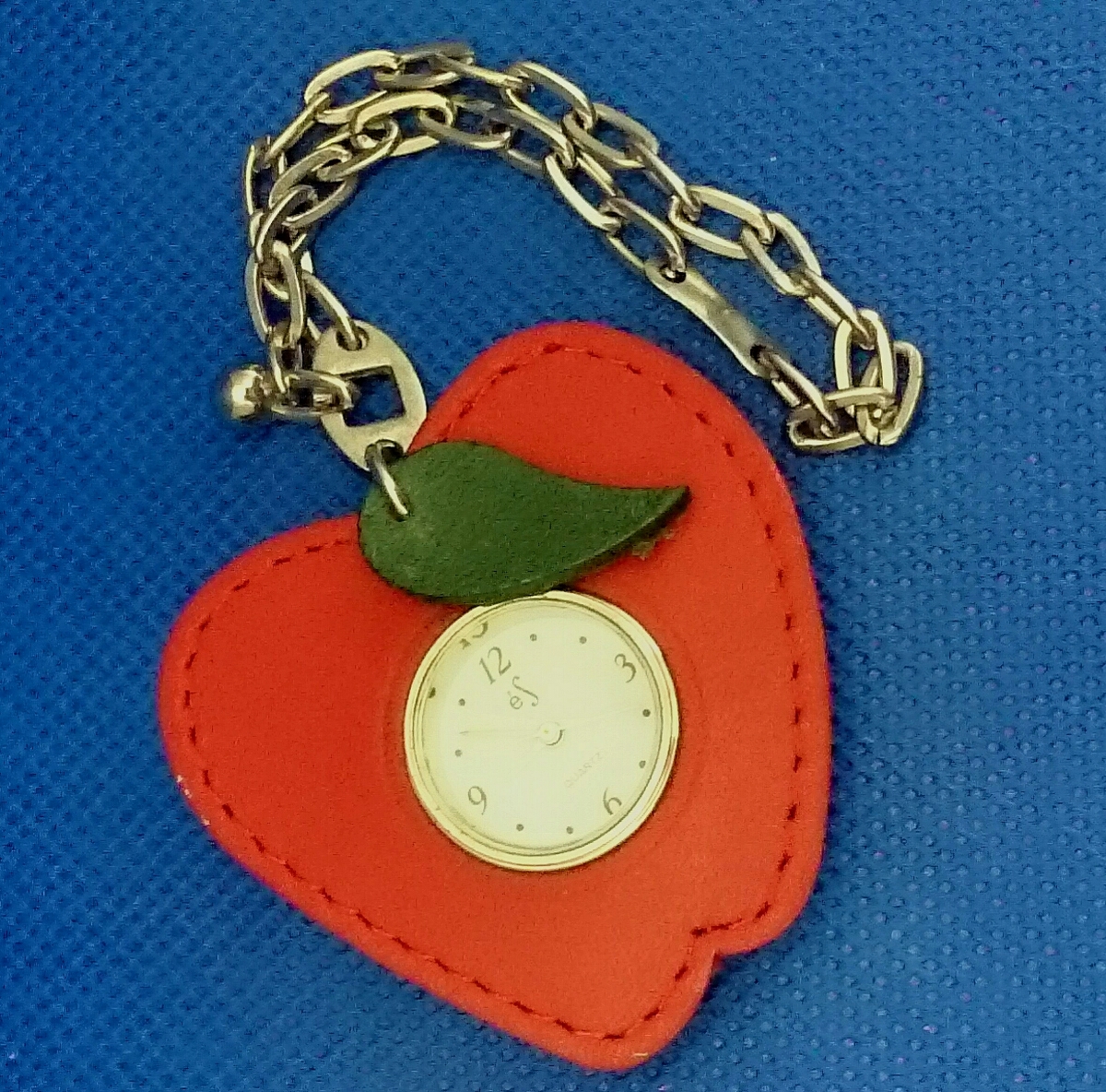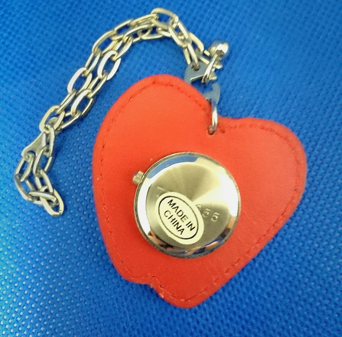 10年以上前、親戚から貰ったフェイクレザーフレーム付き懐中時計キーホルダーです。