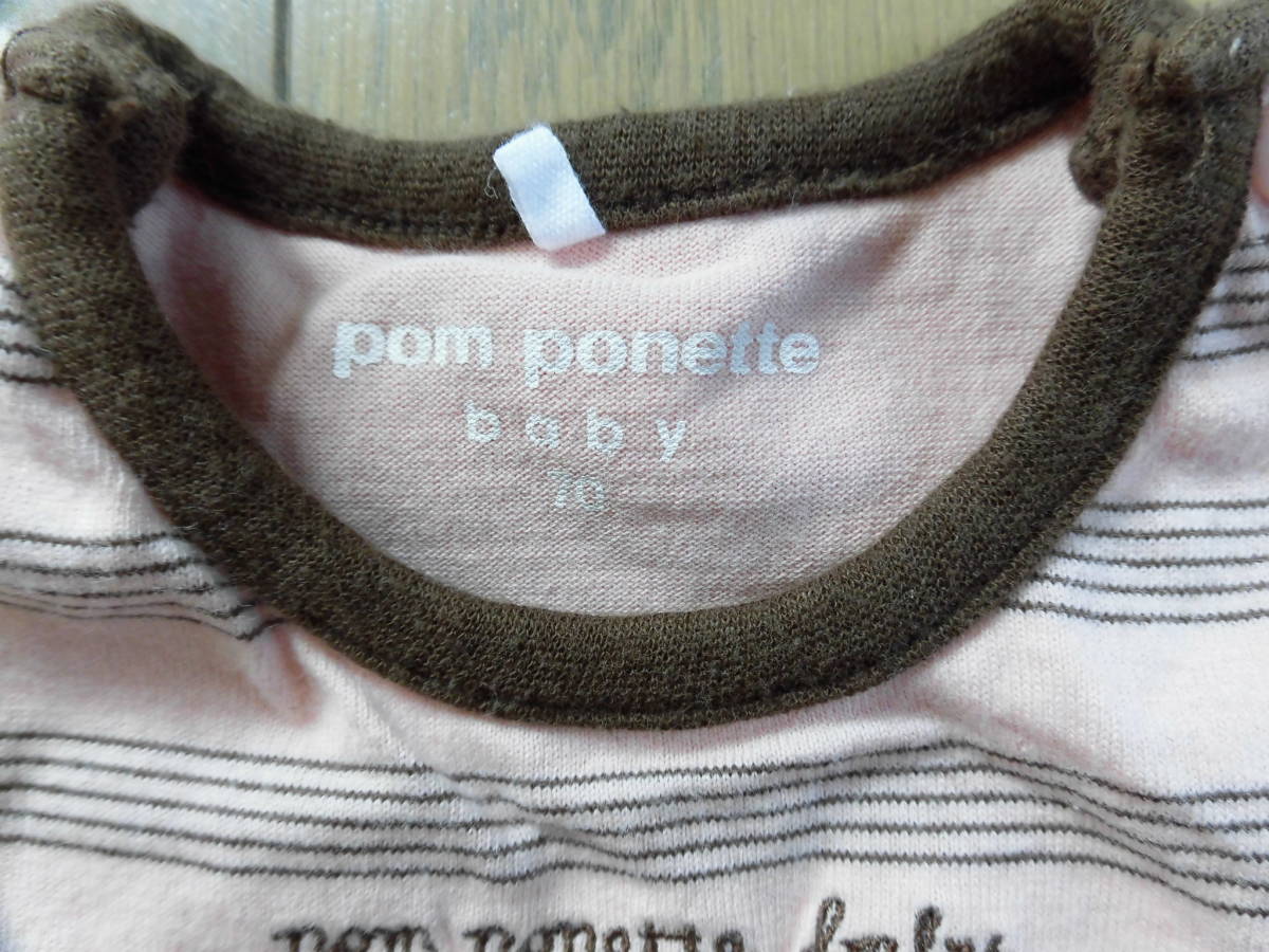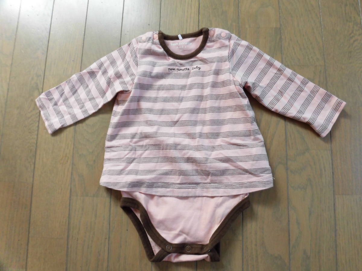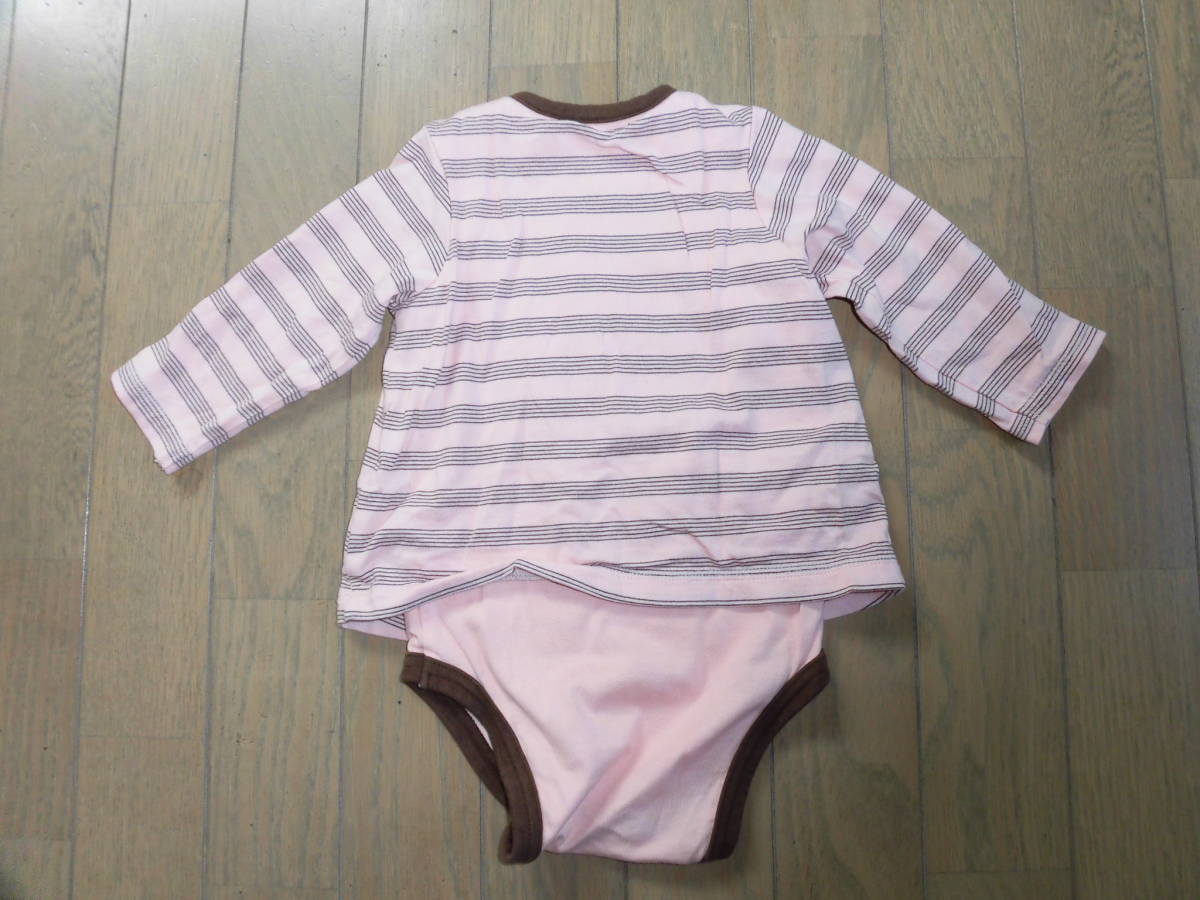 ポンポネット★ピンクボーダー長袖カバーオール、ボディスーツ★70