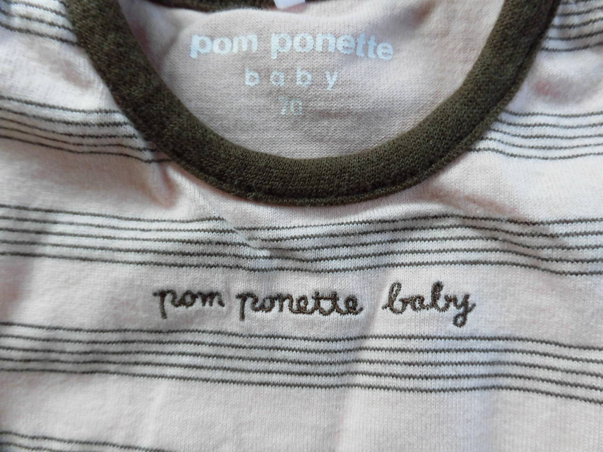 商品説明 ポンポネット★ピンクボーダー長袖カバーオール、ボディスーツ★70