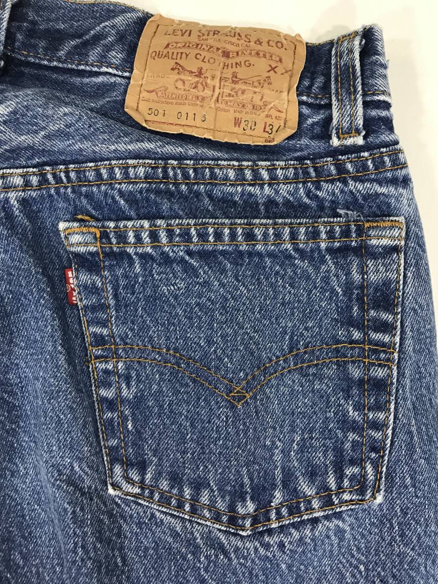 アクセス頂きありがとうございます。 こちらはアメリカ買付古着 リーバイス 501 デニム パンツ です。 全体的に使用感、擦れはありますが 状態は良いと思います。 W30L34 ウエスト 36㎝ 股上 27.5㎝ 股下 78㎝ 裾幅 19㎝ 全長 99.5cm その他、多数出品しております。 こちらもご覧下さい |