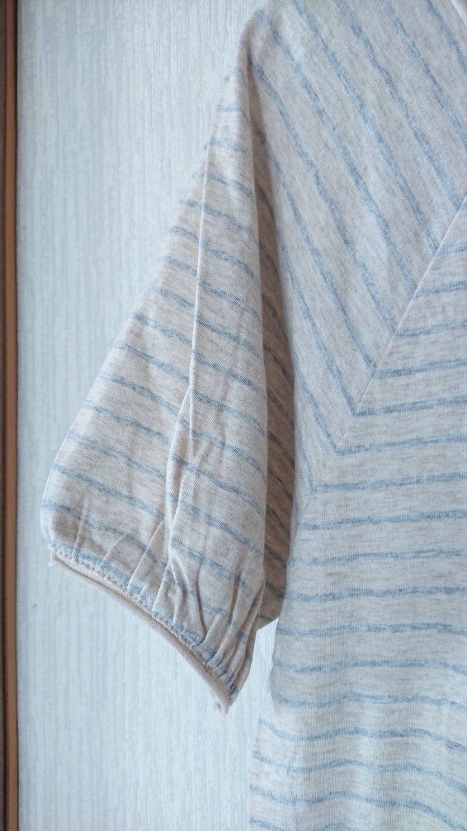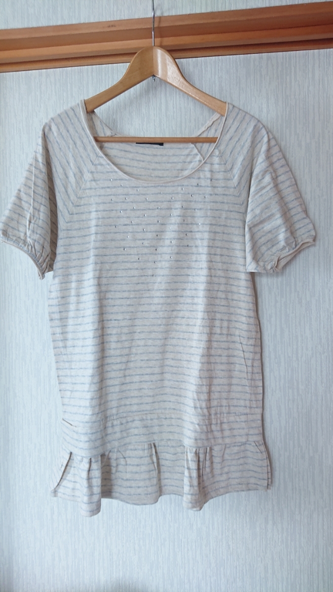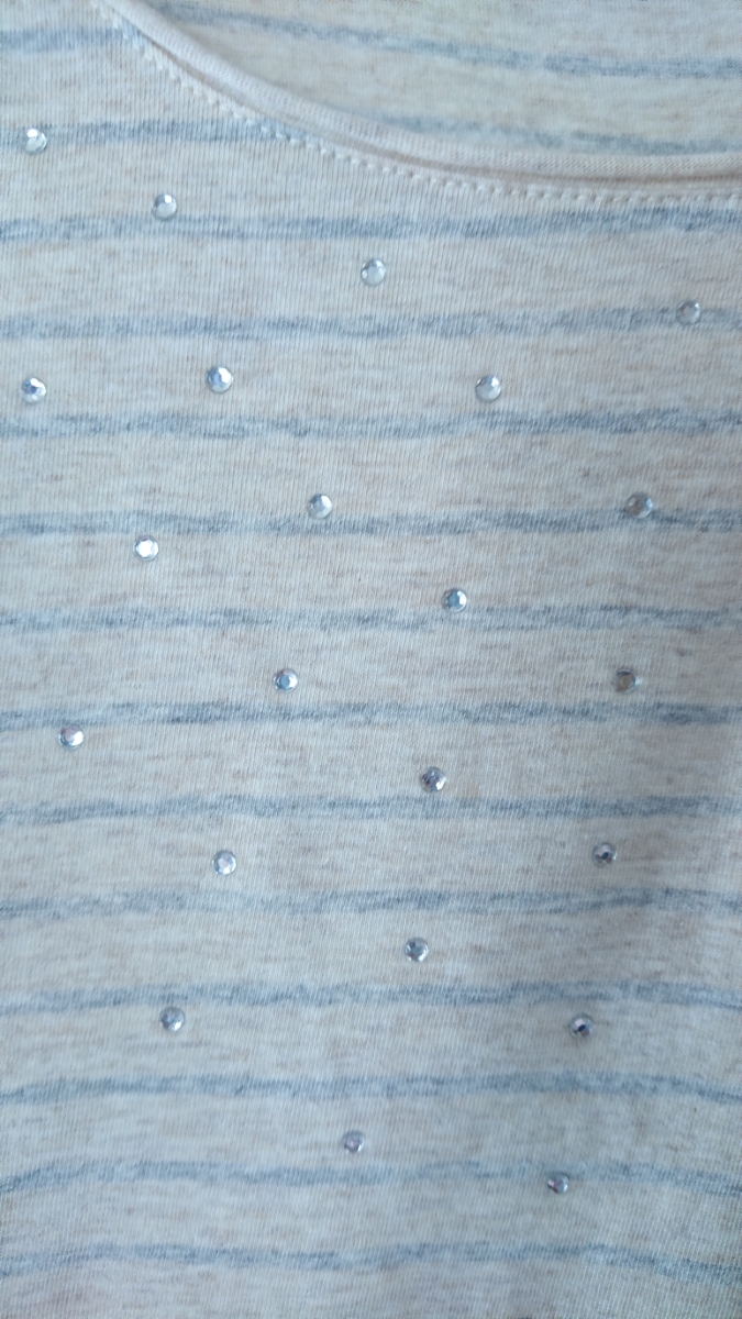 商品名 : 新品 杢ベージュ ボ―ダ― ダイヤつき 裾プリントチュニック