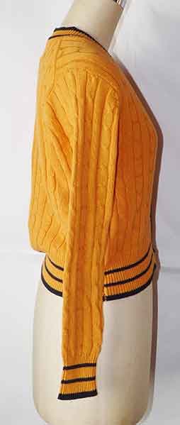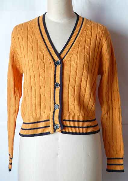 綿100% ケーブルー編み レディース 長袖VカーディガンOrange