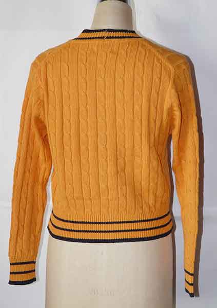 このニットは、日本でデザインし、中国でハンドフレーム(手横編み機)で一枚一枚丁寧に編み上げ、縫製しております