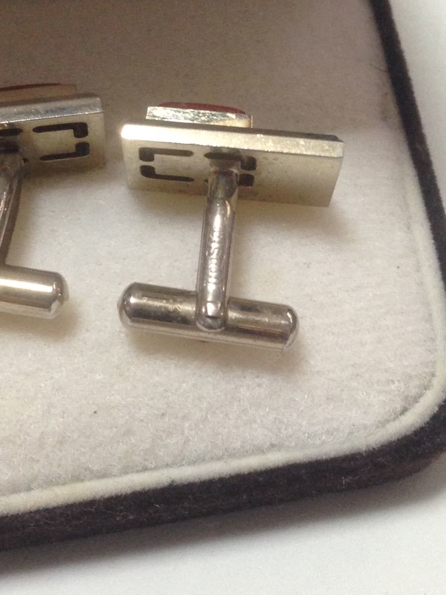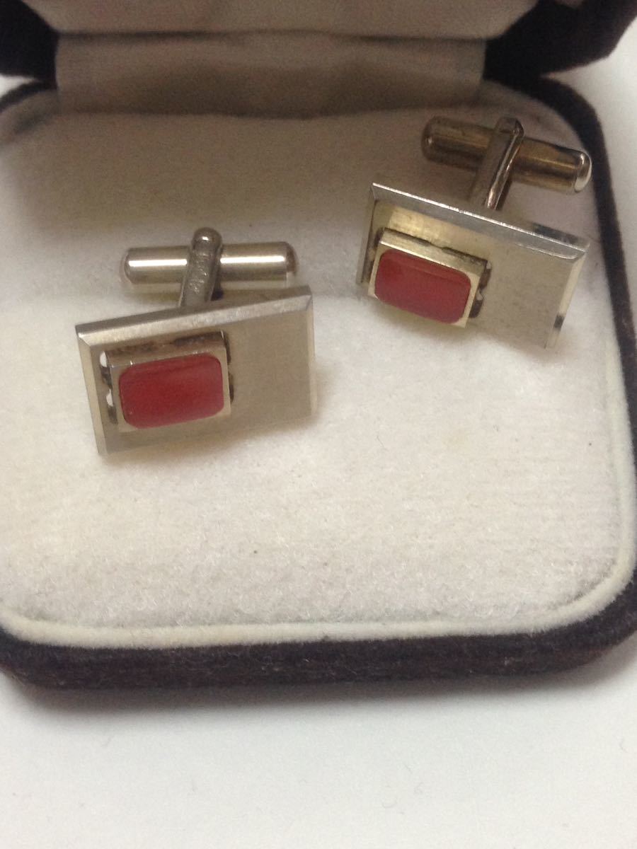 オレンジ瑪瑙のカフスです、瑪瑙のサイズは8×5ミリ、カフスのサイズは18×12ミリ、カフスの金具に何か、刻印が入っておりますが、薄くなっているので、よくわからないので、宜しくお願いいます