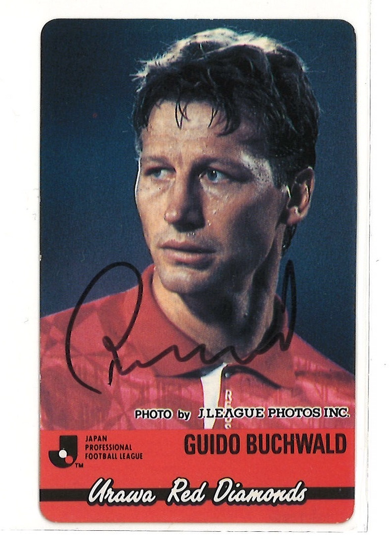 直筆サイン入 激レア! 1994 Calbeeカード 浦和レッドダイヤモンズ「ギド・ブッフバルト選手」 173 西ドイツ代表 です。