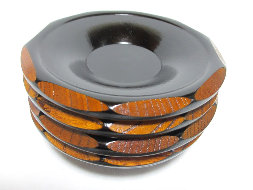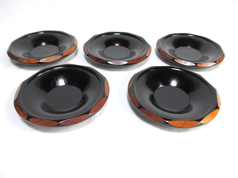 【漆切子】 漆と木で切子の味わいを表現した高級感あふれる品です。木目を生かした染色と亀甲彫りという技から生まれた漆切子は、木の温もりと漆ならではのコクの深さを感じられます。 上質な欅を使用し、木目と漆の色合いが調和した、美しい欅造漆塗りの小皿です。 木目をきれいに浮き立たせ、力強い曲線で豊かな表情を生み出した技術の高さが目を引きます。木製のため軽く、手に取った際の手触りも陶器のものと比べて冷たさを感じません。漆塗りの艶やかさも伴い、ハレの日にお使いいただけるような上品さと粋な印象も持ち合わせた逸品です。 【サイズ】(約/cm) 直径13.7、高さ2.3、深さ1.8 重さ91g 五枚一組 | |