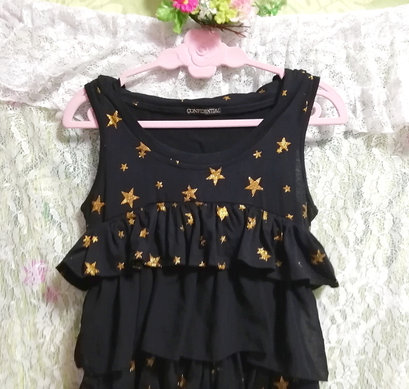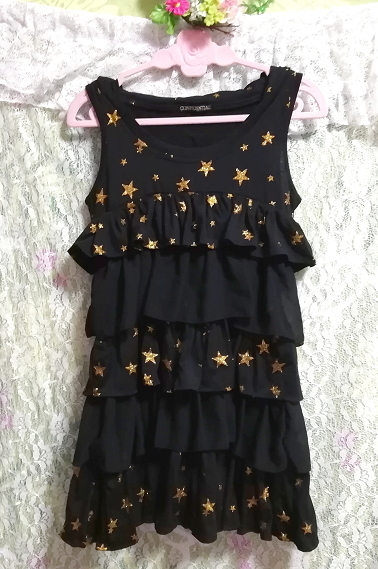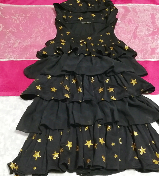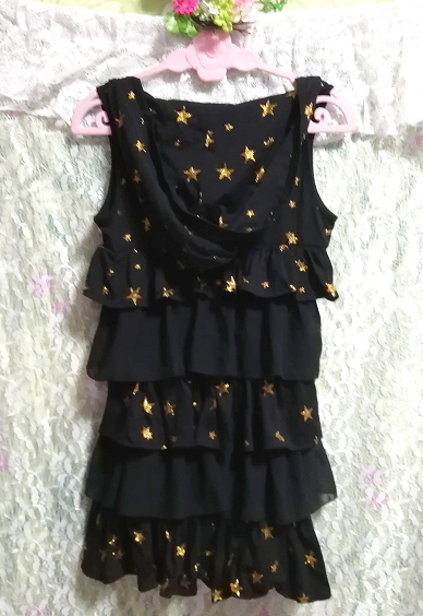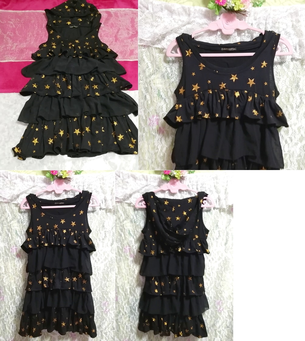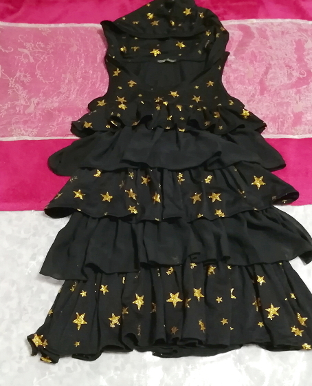 黒ハロウィン星柄フリルスカートネグリジェチュニックワンピース Black halloween star pattern ruffle skirt negligee tunic dress