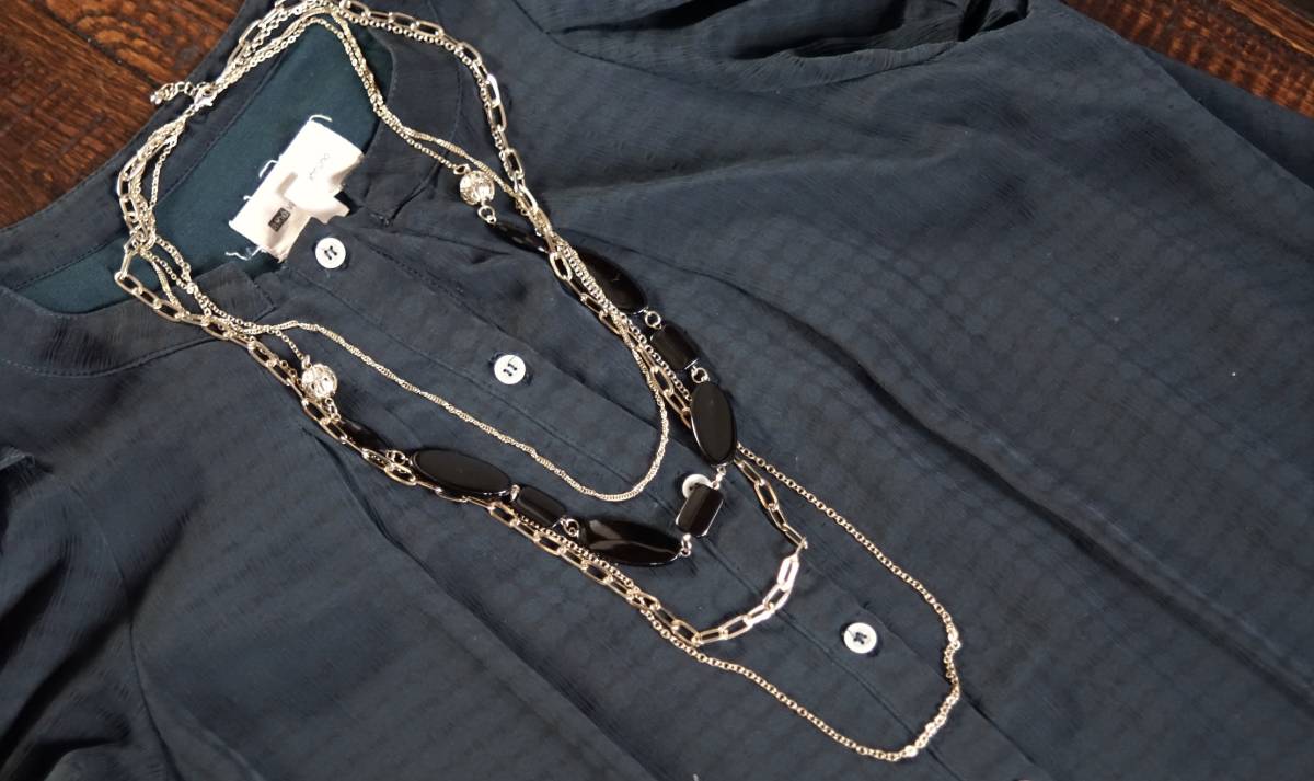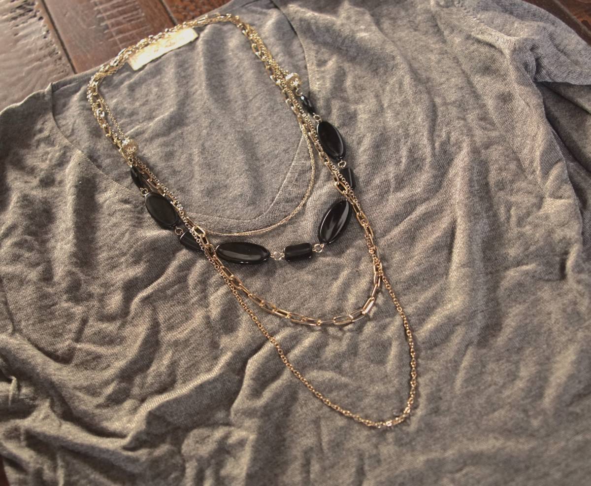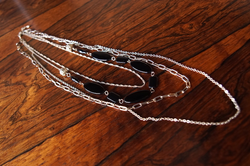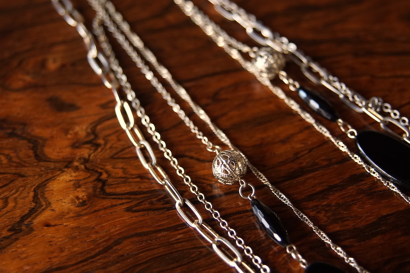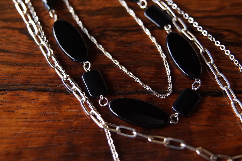 *存在感のあるネックレスはシンプルなワンピースと好相性です。また、Vネックに合わせていただくと、ネックラインが綺麗に見えます。