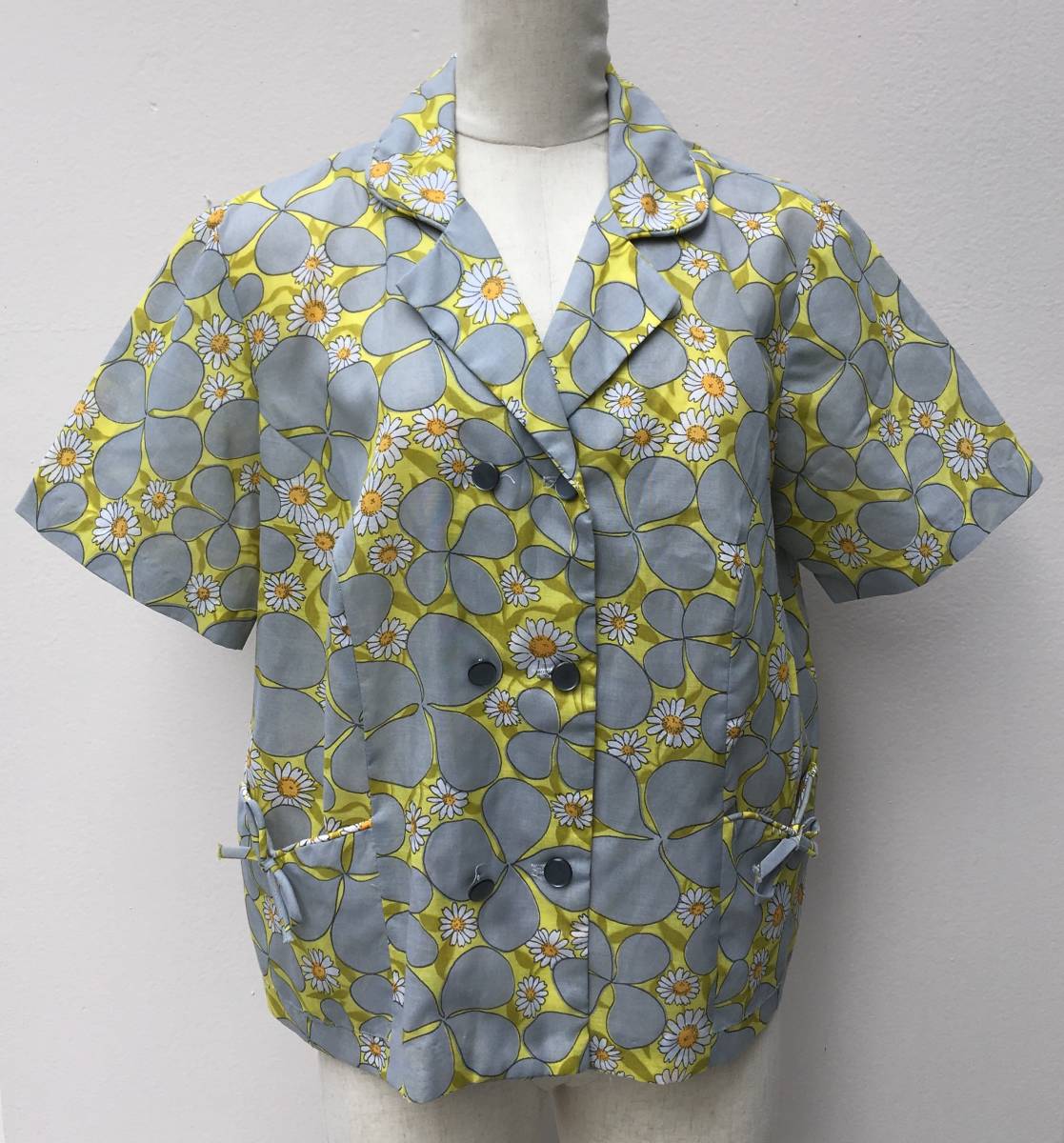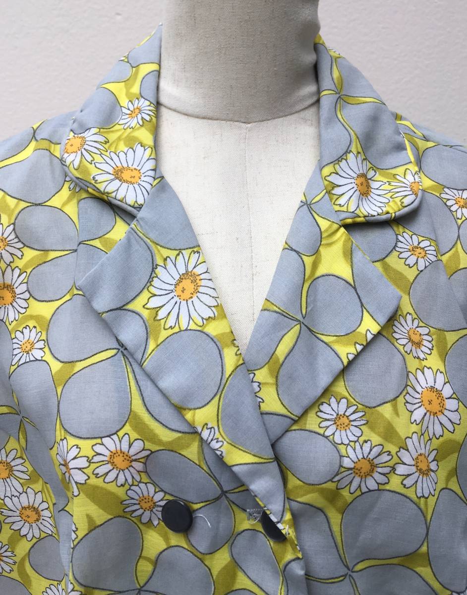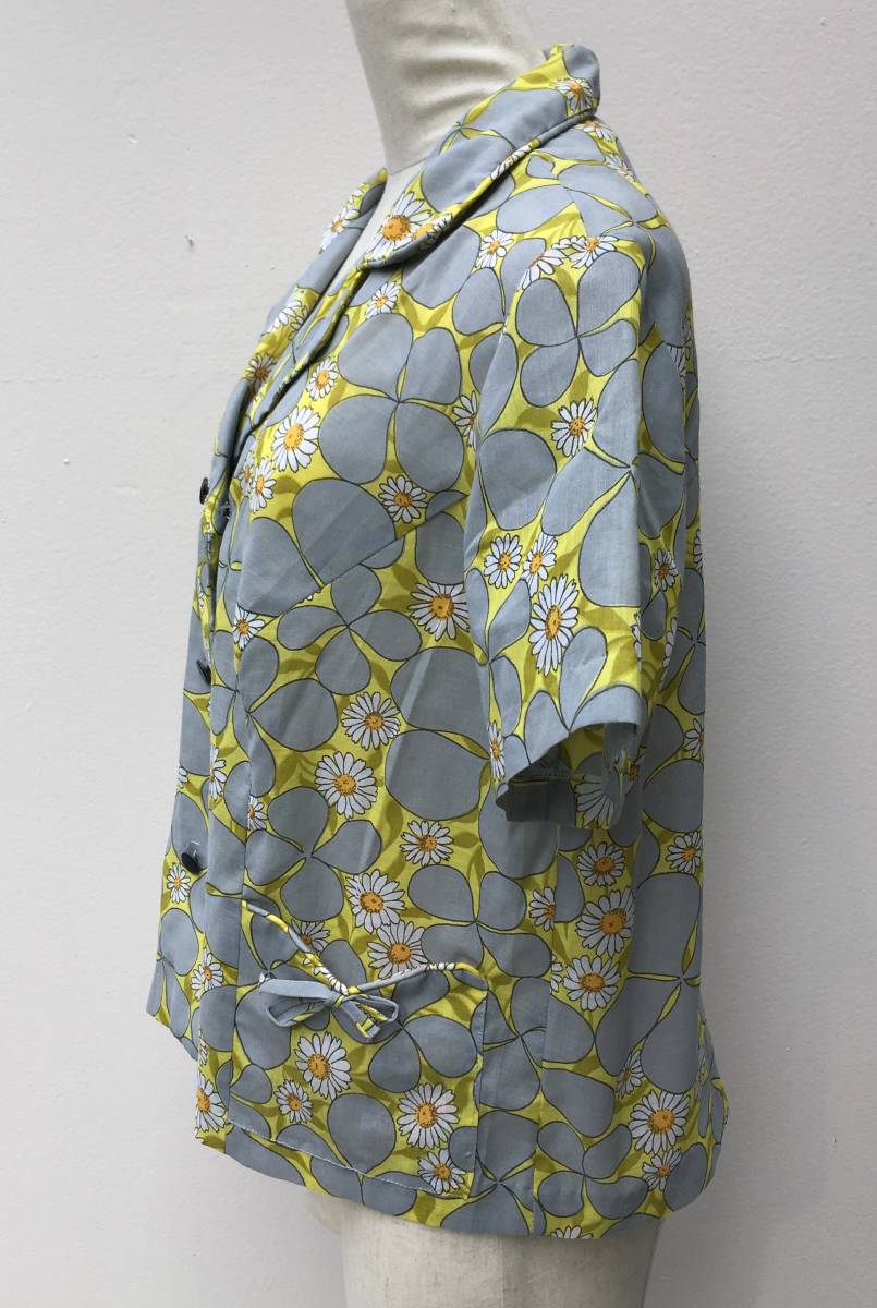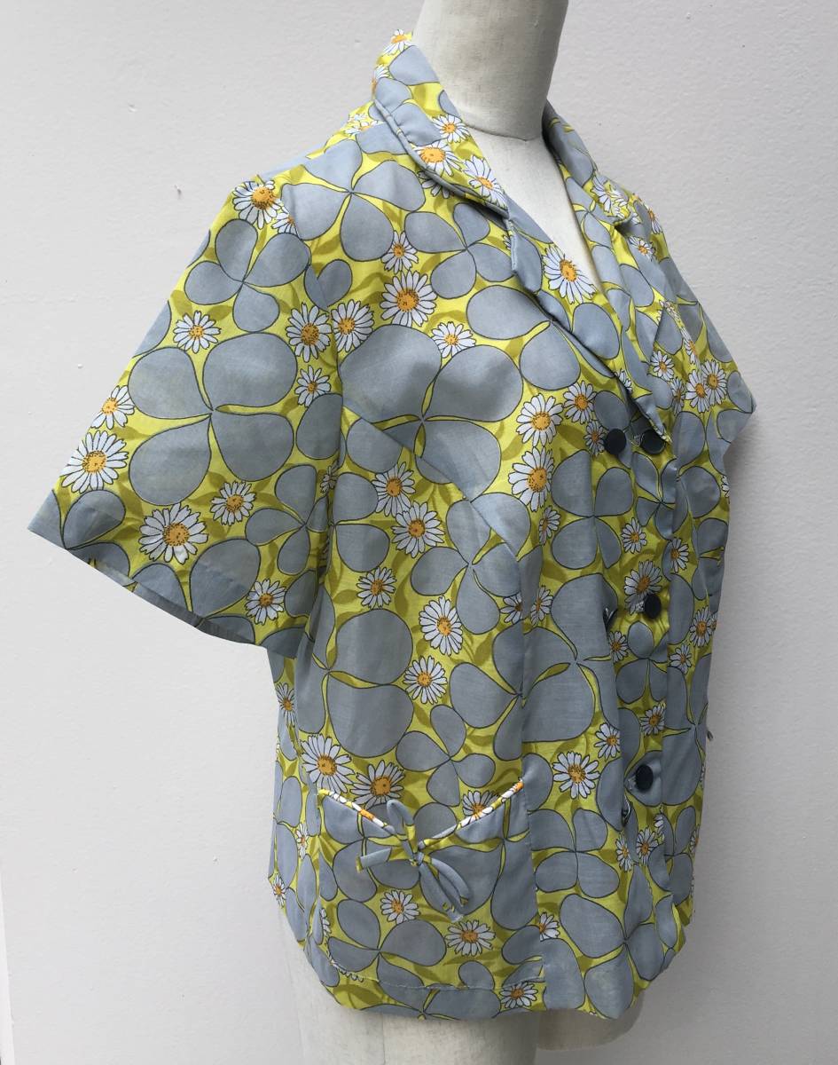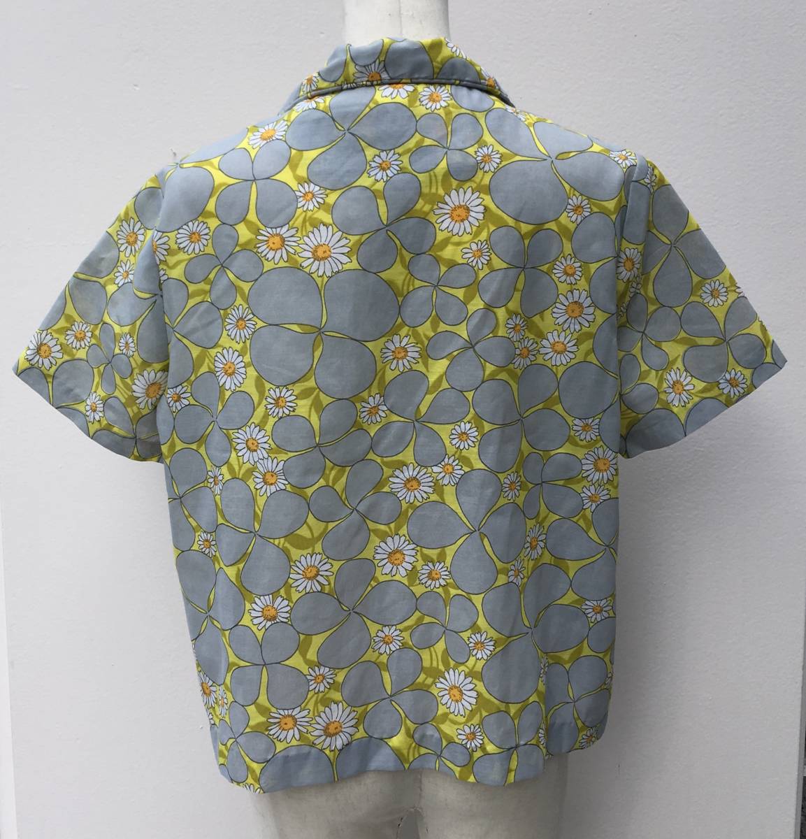 ヨーロッパビンテージ マーガレット柄半袖開襟シャツ