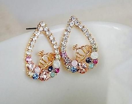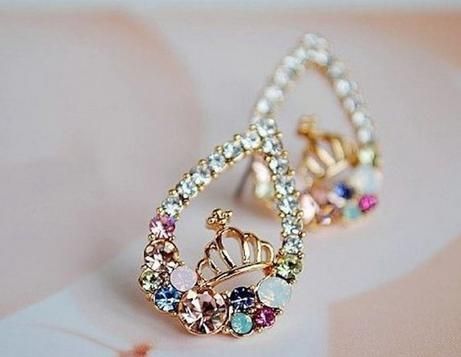 ペアシェイプ王冠ピアス ラインストーン 涙型ピアス | |