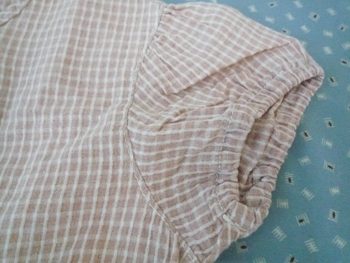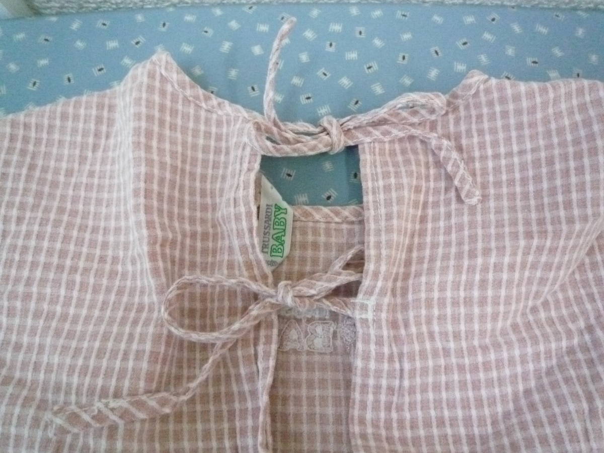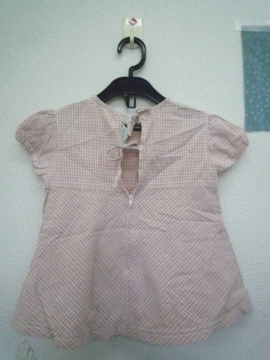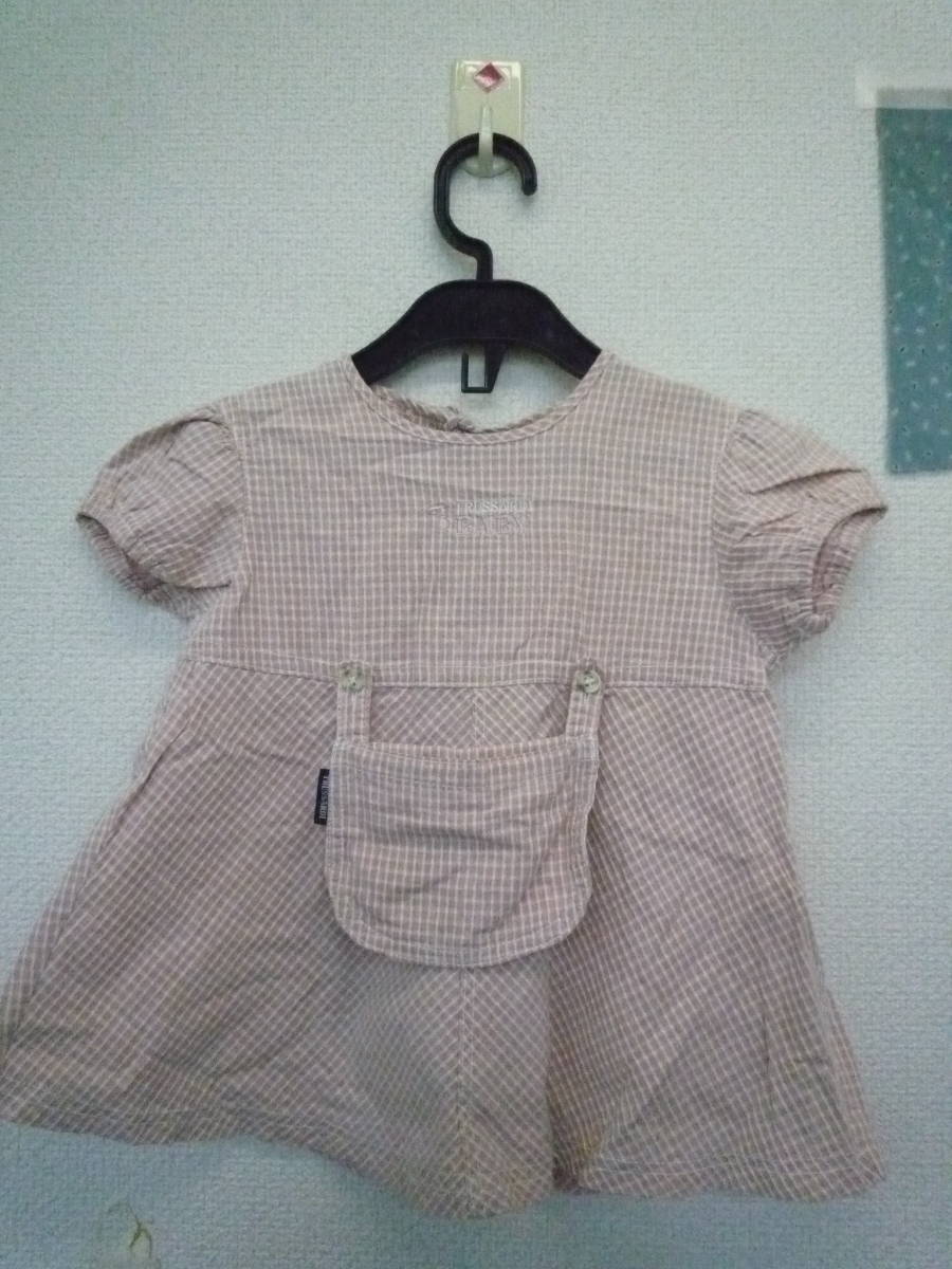 ★TRUSSARDI BABY トラサルディ 半袖パフスリーブワンピース 背中見せ 格子 ピンク系 前掛けポケット付き サイズ90