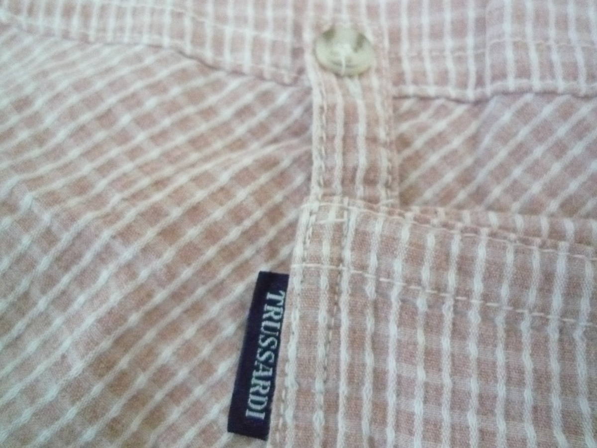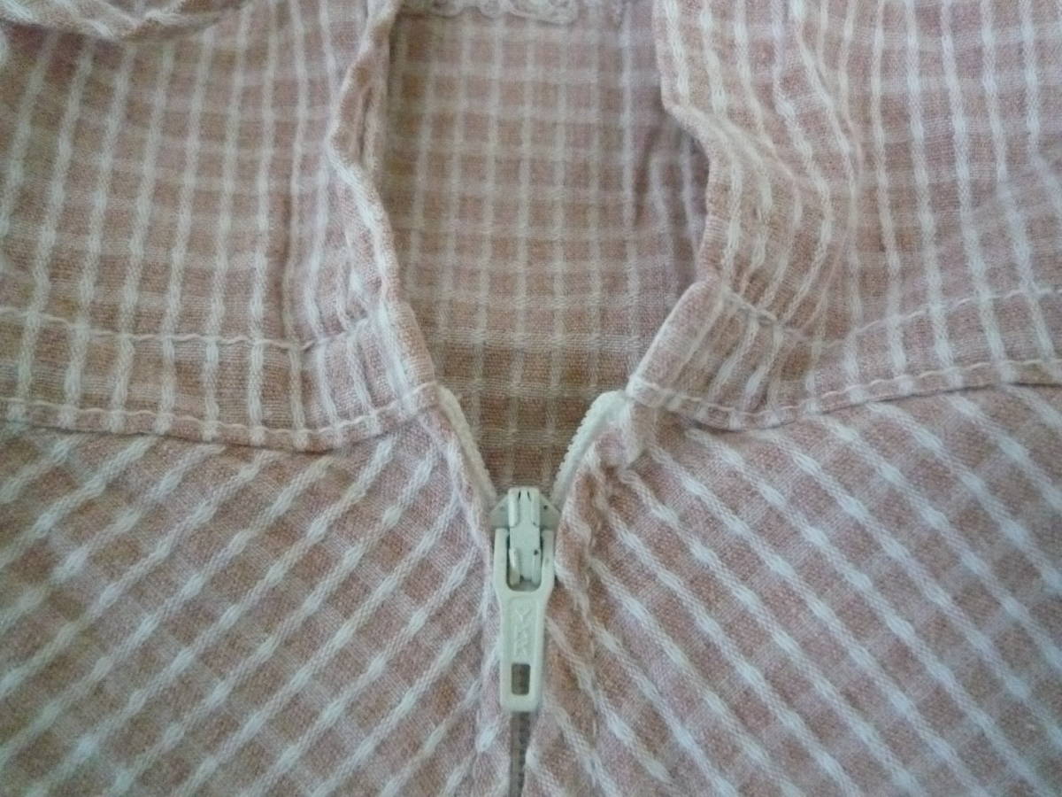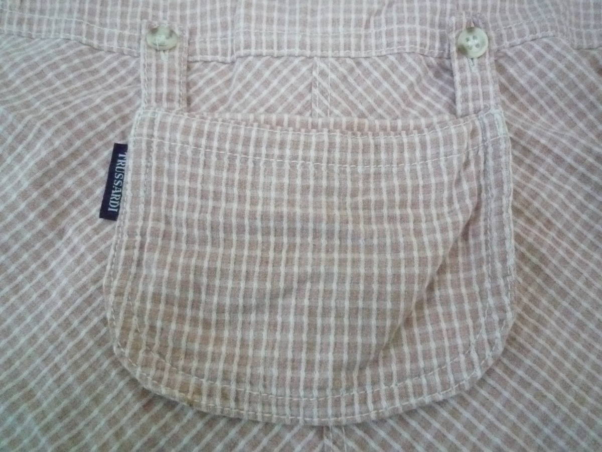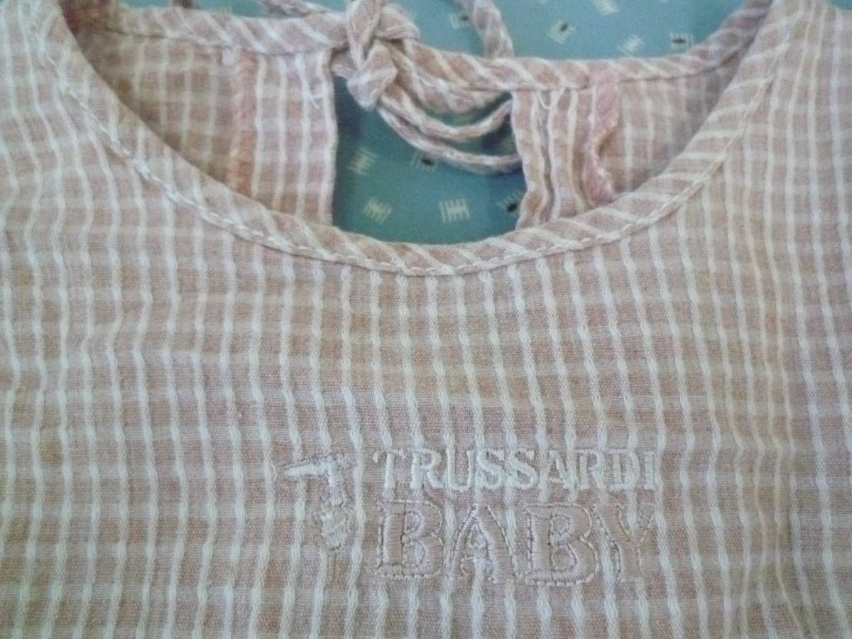 ★TRUSSARDI BABY トラサルディ 半袖パフスリーブワンピース 背中見せ 格子 ピンク系 前掛けポケット付き サイズ90