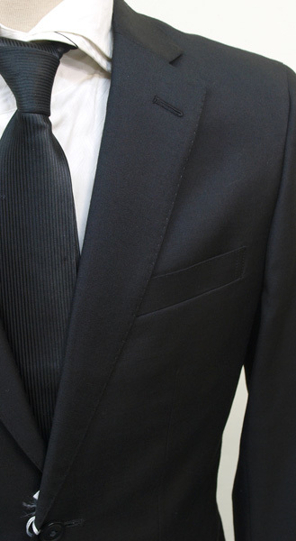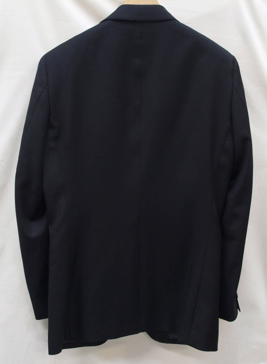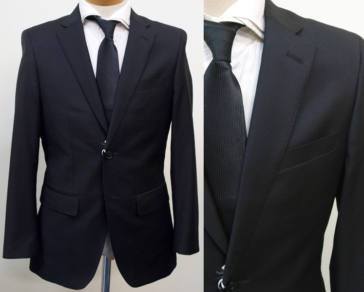 【サイズ】 Y6(YL号サイズ相当) 目安の体型 身長170cm~180cm、ウエストサイズ78cm前後 【ジャケット実寸】 肩幅44cm 着丈73cm 袖丈61.5cm 脇下部分49.5cm 身幅45cm 【パンツ実寸】 ウエスト(胴回り実寸)78cm (平置きでかるくはかると78cmでひっぱってはかると80cmです。股上が浅いため実寸が2cmほど大きめに作られております。) わたり幅31.5cm(股下10cmの部位で28cm) 裾幅19.5cm 脇股上23cm 前股上25.5cm 股下96cm(裾上げしていない状態/新品) 【素材】 表地:ウール60% ポリエステル40% 裏地:胴裏/ポリエステル100% 袖裏/ポリエステル100% 【色】 黒色 【柄】 無地 真夏向けほど透け感がなく厚みがあり、真冬向けと比べると薄手の適度な厚みのオールシーズン向け紳士スーツ用のウールブレンド素材を使用 【デザイン】 コンパクトな印象の細身ですっきりとしたシルエット、タイトフィットスリム、ビジネススーツ新品、裾上げしていない状態です。 ・ジャケットはシングル2つボタンのスリムモデル ・パンツは股上が浅く細いシルエットのノータックスリムパンツ 【縫製仕様】 ・ジャケットはシングル2つボタン、ノッチドラペル、襟縁等AMFステッチ入り、袖口ボタン4つ、センターベント、内ポケット4つ(小ポケット2つ含む)、背抜き(通年向け) ・パンツはノータック、膝裏当て付き、脇ポケット斜め付け、後ろポケット両玉縁で左のみボタン付き、フロントはファスナーでボタン&ホック仕様/うちかけボタン きちんとしたビジネス仕様の縫製仕立てで仕上がっております。 ご着用の地域にもよりますがオールシーズン対応商品