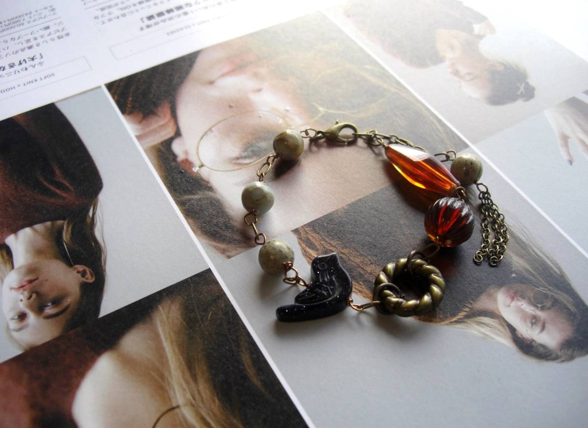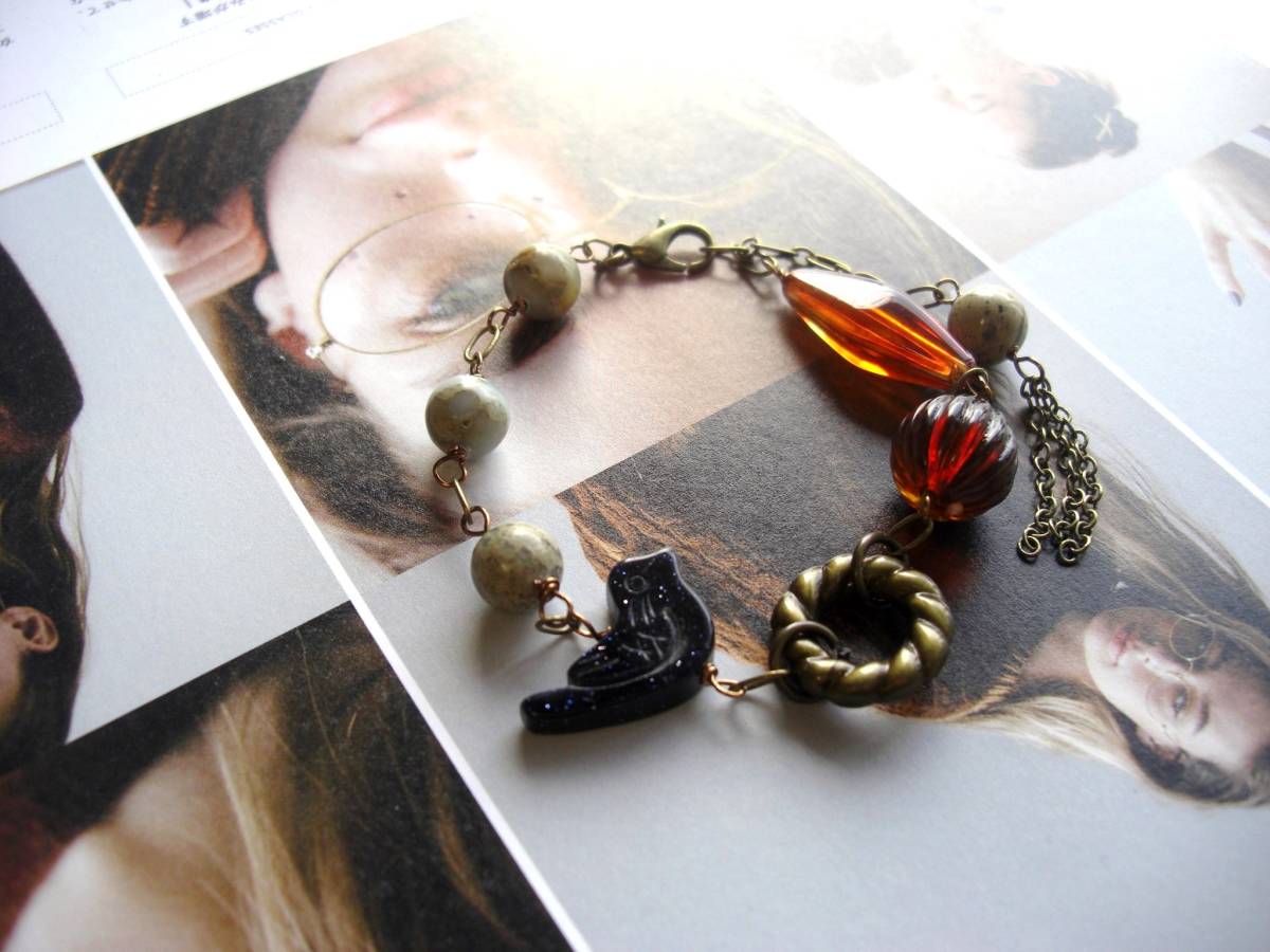 4月のクローゼット・・シリーズです♪シックなブルーサンドストーンの鳥とやさしいモスグリーンのインプレッションストーンのブレスレットです♪8ミリ のインプレッションストーンに20×13ミリのブルーサンドストーンの鳥やデザインリングや樹脂ビーズを繋ぎました♪アンティークモダンな表情です♪長さは23センチ位で調節自由です。 シンプルなデザインなので長く着けて頂けると思います♪お揃いのネックレスやイヤリングも出品しています。ハンドメイド を ご理解頂いてノークレーム、ノーリターンでお願いします!