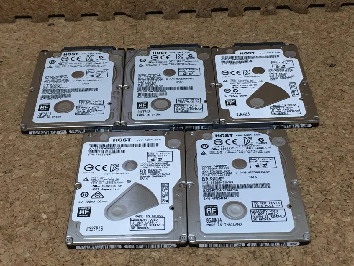 2.5インチ SATA 500GB HDD 7mm 中古5台セット | |||