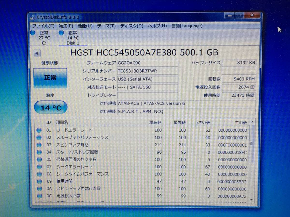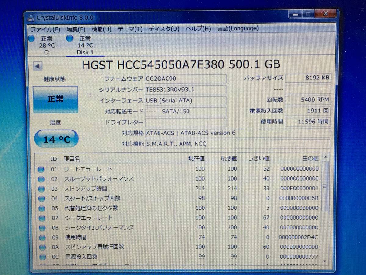 | 御覧いただきありがとうございます 1.メーカー、型番: *2.5インチ SATA 500GB HDD 7mm 中古5台セット。 2. *データ消去済み、CrystalDiskInfoにて状態正常です。 他チェックしておりませんので ノークレームノーリターンでお願いします。 *ご了承の上、検討してください。 *HGST HCC545050A7E630 500GB 1816回9554Hr。 *HGST HCC545050A7E380 500GB 2674回23475Hr。 *HGST HCC545050A7E630 500GB 63回2154Hr。 *HGST HCC545050A7E380 500GB 1911回11596Hr。 *HGST HCC545050A7E380 500GB 5947回11542Hr。 | |||