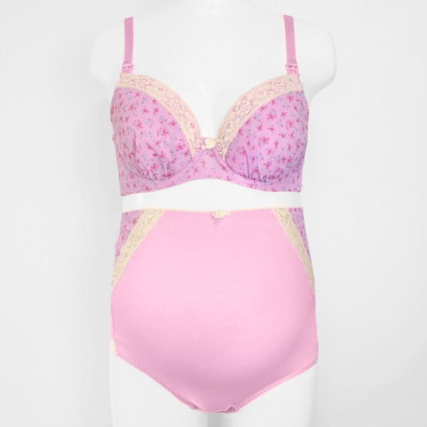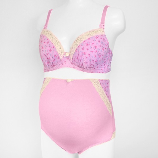 【新品】C70/M■小花柄マタニティブラジャー&ショーツ■ピンク 授乳対応 ストラップオープン 産前産後 授乳ブラ 可愛い 上下セット