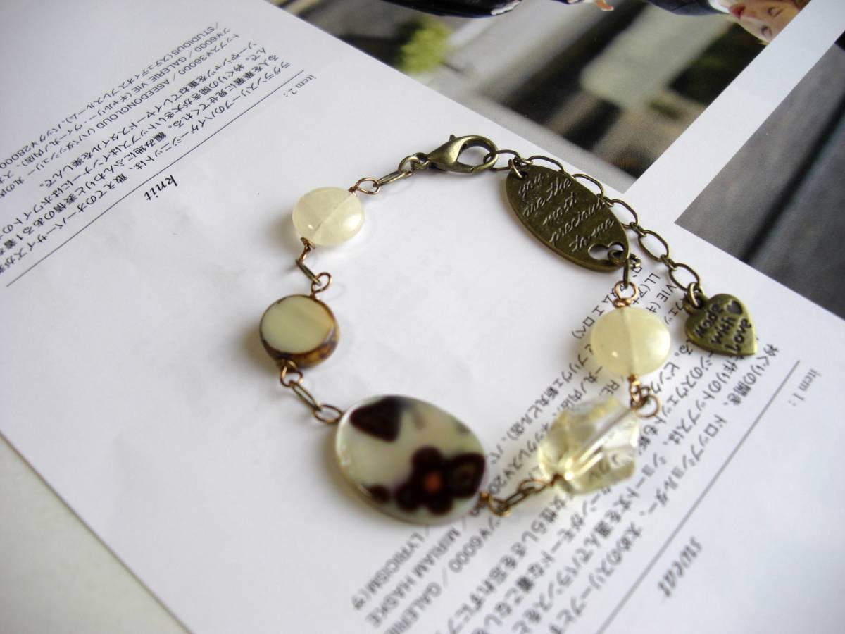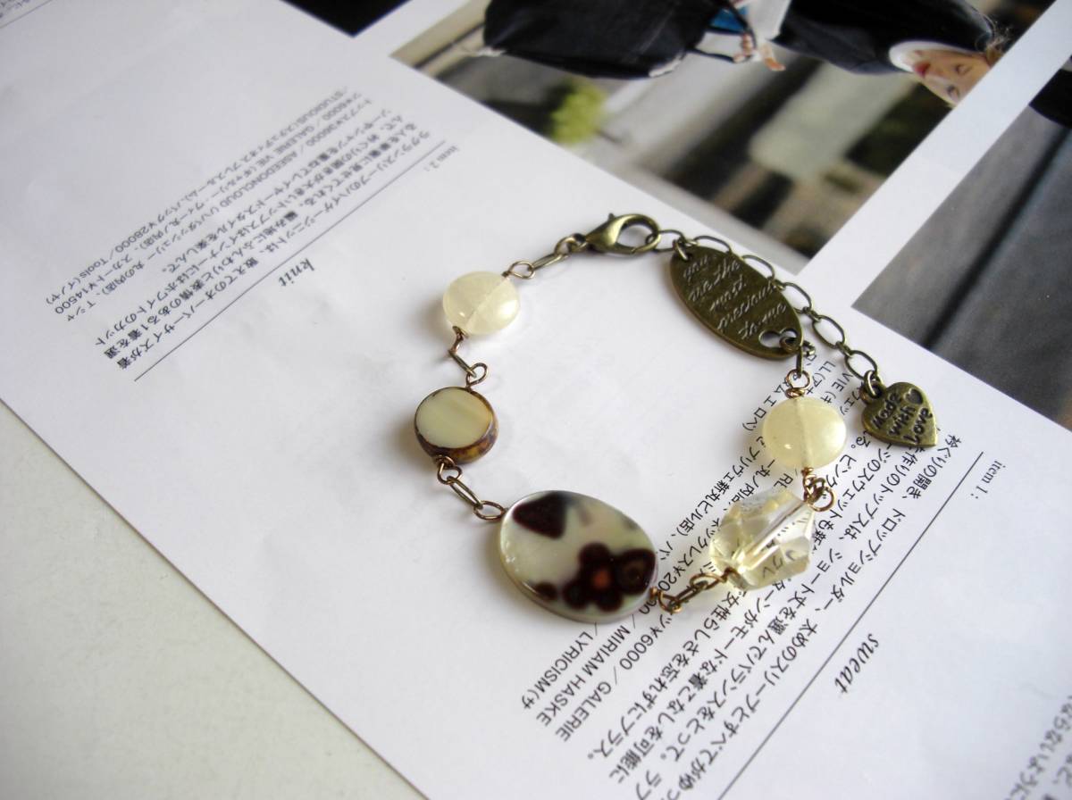 フレンチ・シック・・シリーズです♪レモン水晶の気品・・神秘的なレモン水晶のブレスレットです♪同じ色調のイエローオパールのコインやチェコビーズ、花柄 のシェルビーズを合わせてロマンチックな表情です♪イエローオパールのコインは10ミリ位、レモン水晶は12×12ミリ位のラフカットです♪長さ は全長22センチ位で調節自由です♪お揃いのネックレスやイヤリングも出品しています♪ハンドメイ ドをご理解頂いてノークレーム、ノーリターンでお願いします