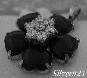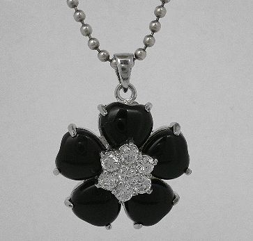 シルバー925銀のハート型オニキス×ジルコニア フラワー ペンダントM/ロジウムコート/シルバージュエリーALL50%OFF