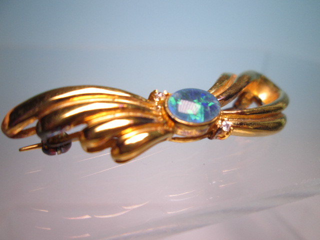 ☆SILVER オパール&メレダイヤのデザインブローチ 7g