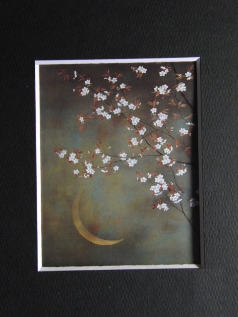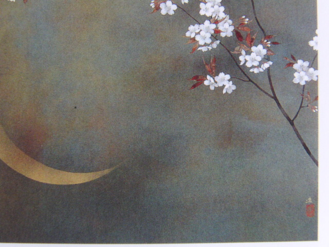 牧進、【みずうみ 月】、希少な額装用画集より、状態良好、新品額装付、インテリア、春、桜
