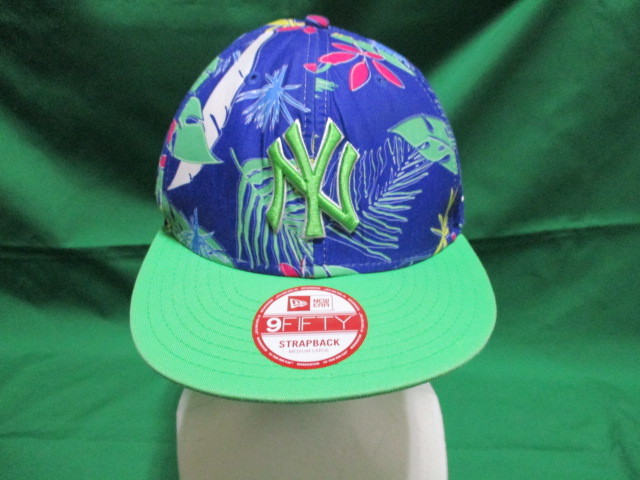 ニューエラ ニューヨーク ヤンキース 帽子 キャップ 総柄 南国柄 アロハ 青系 NEWERA