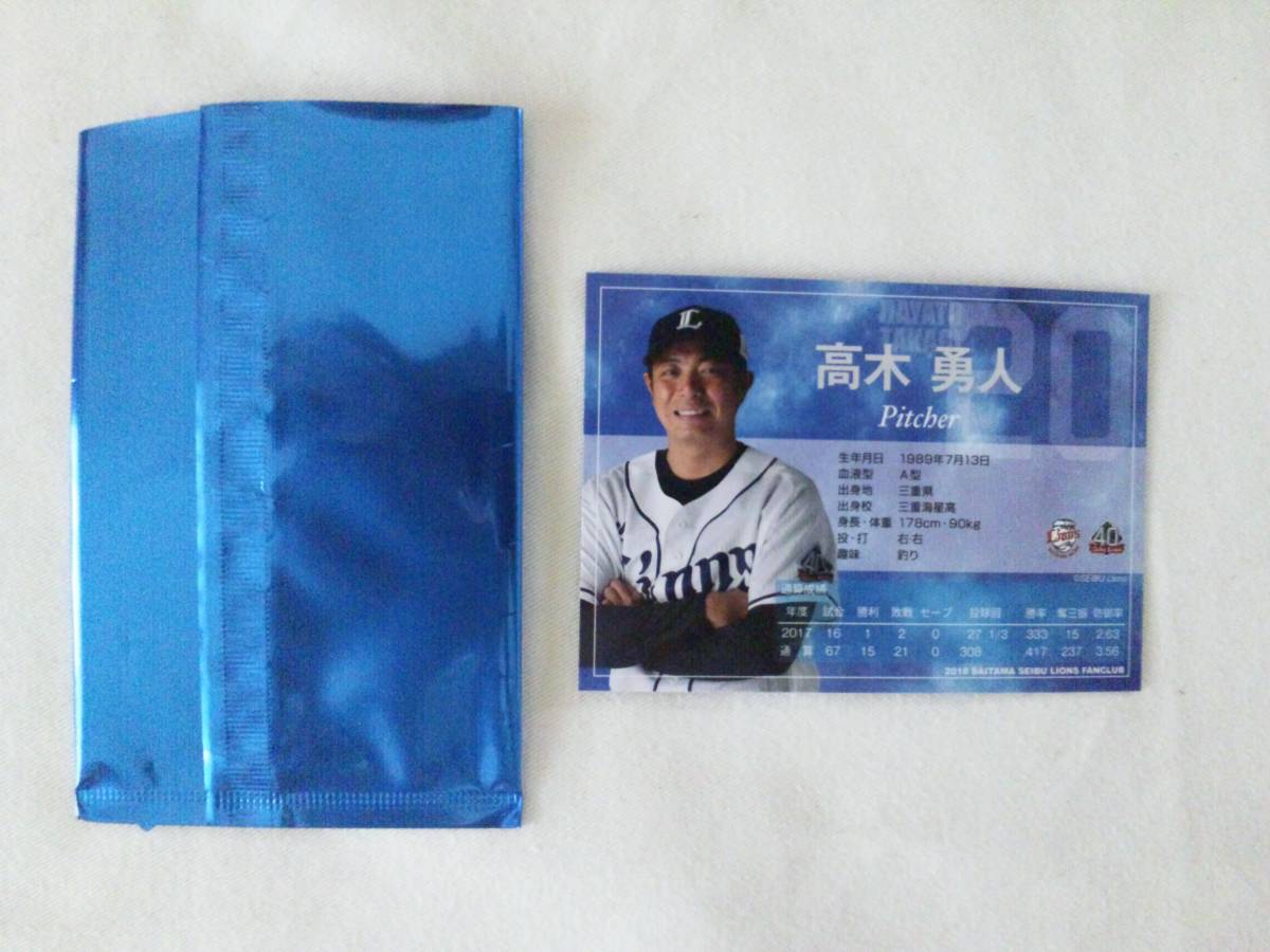 ライオンズ 2018 埼玉西武ライオンズ FC会員限定 ファンクラブ カード 高木勇人 20
