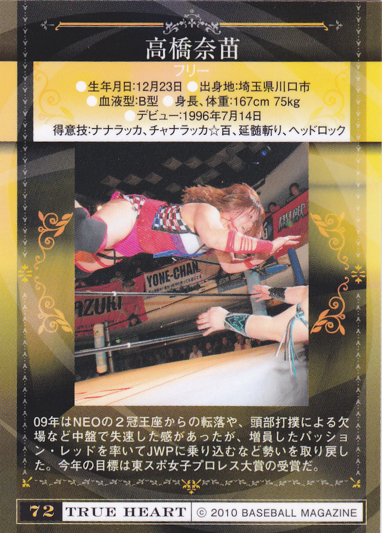 BBM2010 TRUE HEART 72 高橋奈苗 フリー 女子プロレス 埼玉県川口市