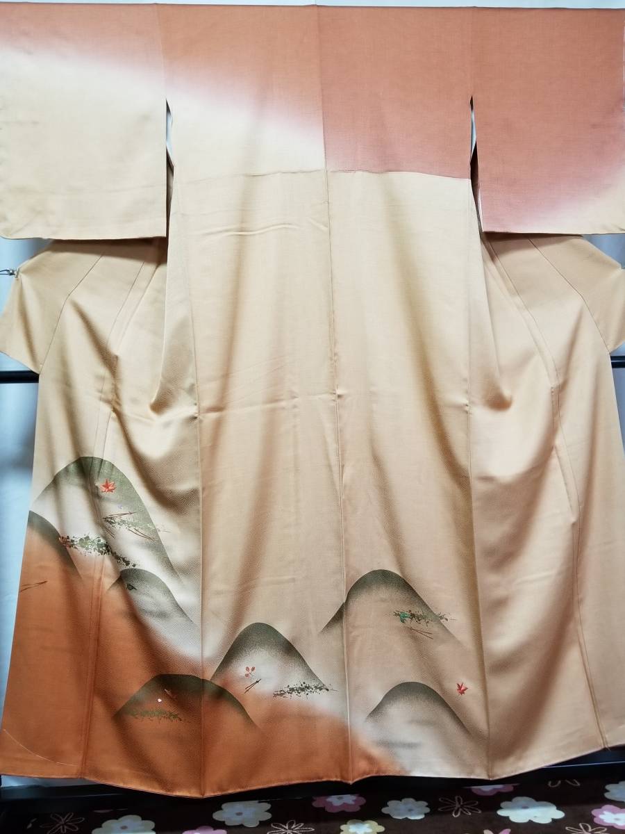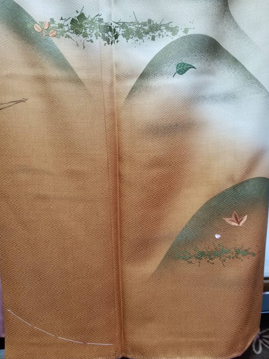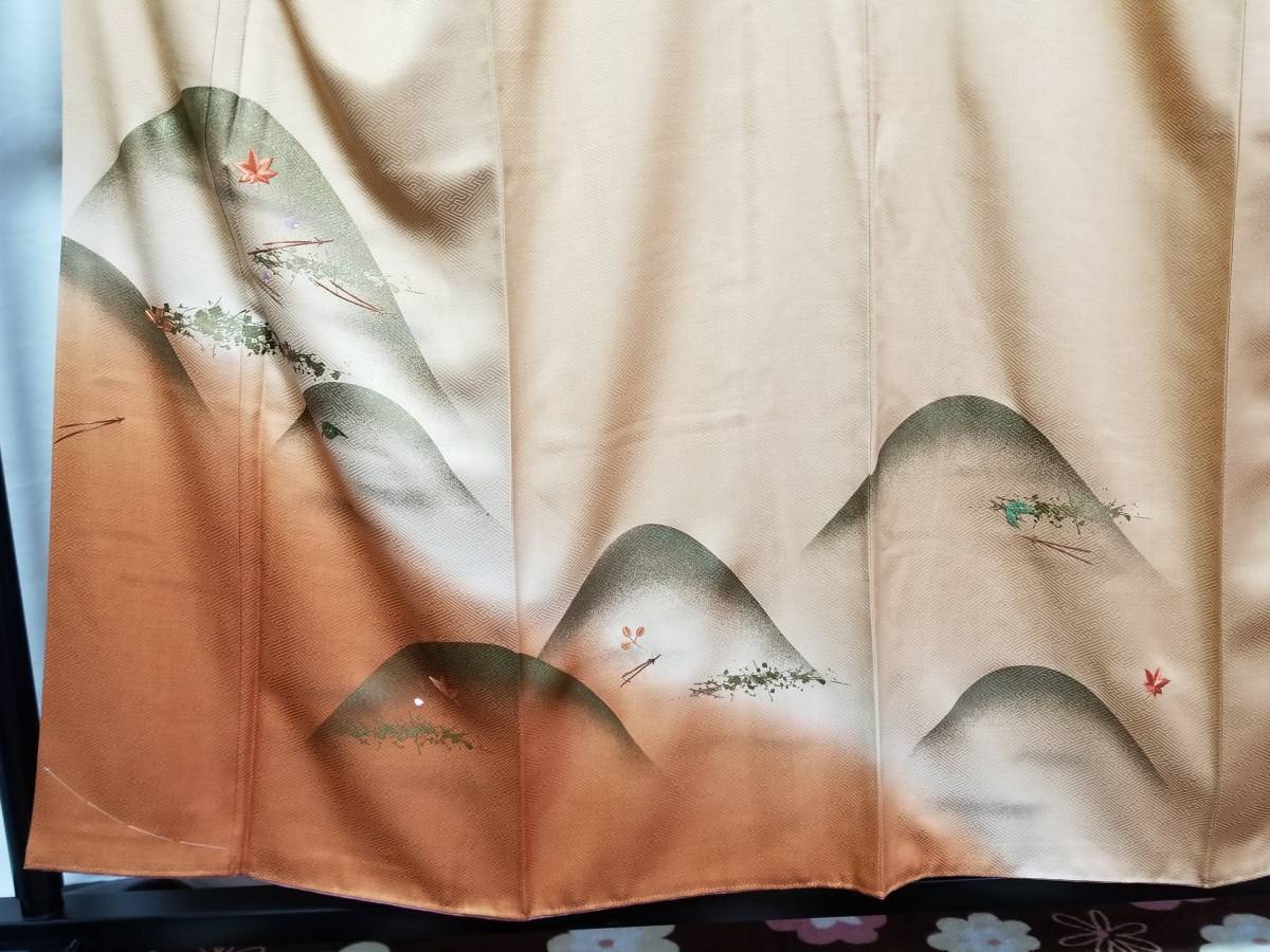 ☆新品 ☆仕付け糸付き ☆検品済 ☆美品 (生地) ○正絹 丹後織 紋意匠縮緬 重目地***綸子文と格子調の地紋 ○ツヤがあり.サラッとした手触り地*お体に沿いやすいです ○着物重さ 約 980g (地色) ○濃い赤みの黄色地{イエロ-オ-カ色に近い}***画像9*の地色が濃く写っぽくてます ○袖山*肩山の手暈し染色は.胡桃色{くすんだ黄赤色} ○裾の手暈し染色は.赤朽葉色{くすんだ黄赤色} ○高級感あるお色です (模様) ○金彩加工の山とカスミ文様 ○極細糸*微細手刺繍の楓*松葉*葉*花びら*小花 ○豪華な文様に仕上げております (胴裏地) ○正絹羽二重地(純白色) 重目地*美品 (八掛地} ○正絹精華縮緬地{梅鼠色*灰みの紫みを帯びた赤色*暈し染}*美品 (寸法) 身丈 (肩から裾まで) 約158cm (内あげ 前身 約13cm 後身 約13cm) 裄丈 約65cm (袖付縫い代 袖側 約2cm 身側 約2cm} 袖丈 約49cm 袖幅 約32.5cm 前幅 約24.5cm 後幅 約30.5cm *広衿(スナップ付) ◎消費税は.お預かりしておりません◎ ◎kirisyou317 桐徳 「呉服の桐正」でも色々と出品しております {注意事項} ★基本的に土、日、祝日、ゴールデンウィーク、お盆、年末年始はお休みさせて頂いておりますので、 ご連絡が遅れる場合もございますので、ご了承ください。 ★どうぞ自己紹介欄も、是非御覧になって下さいませ。 ●落札後にヤフーから届くメールに、メッセージを記載しておりますので、 そちらも必ずご覧下さいませ。 ●当方、ストア出品ではなく、一日中パソコンに向かっておらず、ご連絡は夜になる事が多いです。その点御理解の上、ご入札下さい。 ●お急ぎの場合など、到着希望の日にちが特に近い場合、ご要望にお答えできかねる場合もございます。もちろん、出来る限り、早急に対応はさせて頂きますが、 その点は、何卒ご了承下さいませ。 入札前に、発送が間に合うかご質問頂けるとありがたいです。 ★感じ方は、人それぞれ違いますので、くれぐれも繊細な方はご入札をお控え下さい。 ★新古品、中古品、アンティーク品に関しましては、特に気をつけて検品し、 当方で着用可能と判断した商品を、出品しております。発送前に陰干しもしております。 目に付いたしみなどがあった場合、記載しておりますが、古布(とくにアンティーク品) にはどうしても時代的な染みや小さい難はあります。(程度の感じ方には個人差があります。) 検品には注意をはらっておりますが、見落としがある場合もありますので、 used、アンティーク品へのご理解をお願いいたします。 古着物はどこかに(特に裏地には)なんらかの小難があるものと思っていただく方がよいと思います。 基本的に返品、クレームはお受け致しかねますので、その点ご理解下さい。 少しでも気になる事は、お気軽にご質問下さい。 ★★返品、クレームはお受け致しておりませんが、万が一、商品に不都合(大幅な寸法間違い 記載以外の着用不可能な位の、大きなシミ、傷みなどの見落とし)などがございました場合、まず、取引ナビにてご連絡下さいませ。 迅速に対応させて頂きます。 ただし ●商品がお客様の元に到着後、1週間以上経過したもの。 ●お客様側で加工など、手を加えた物。 ●お色目が、思っていたものと違っていた、または、思っていた感じと違っていた。 (画像はできるだけ実物に近い色で写るように努力していますが、素人の撮影ですので、どうしてもPCによって多少違ってくる事があります。 出来るだけ、分かりやすいように説明は入れさせて頂きます。分かりにくい場合、ご質問下さい。) 以上につきましては、対応出来ませんので、ご理解下さい。 ★複数商品の落札予定のある場合、ご連絡頂きましたら、1週間程でしたら、お取り置させて頂きます。 お気軽に、お申し出下さいませ。 ★送料は、1個で発送が無理な場合は、こちらよりご連絡させて頂きます。 | |||