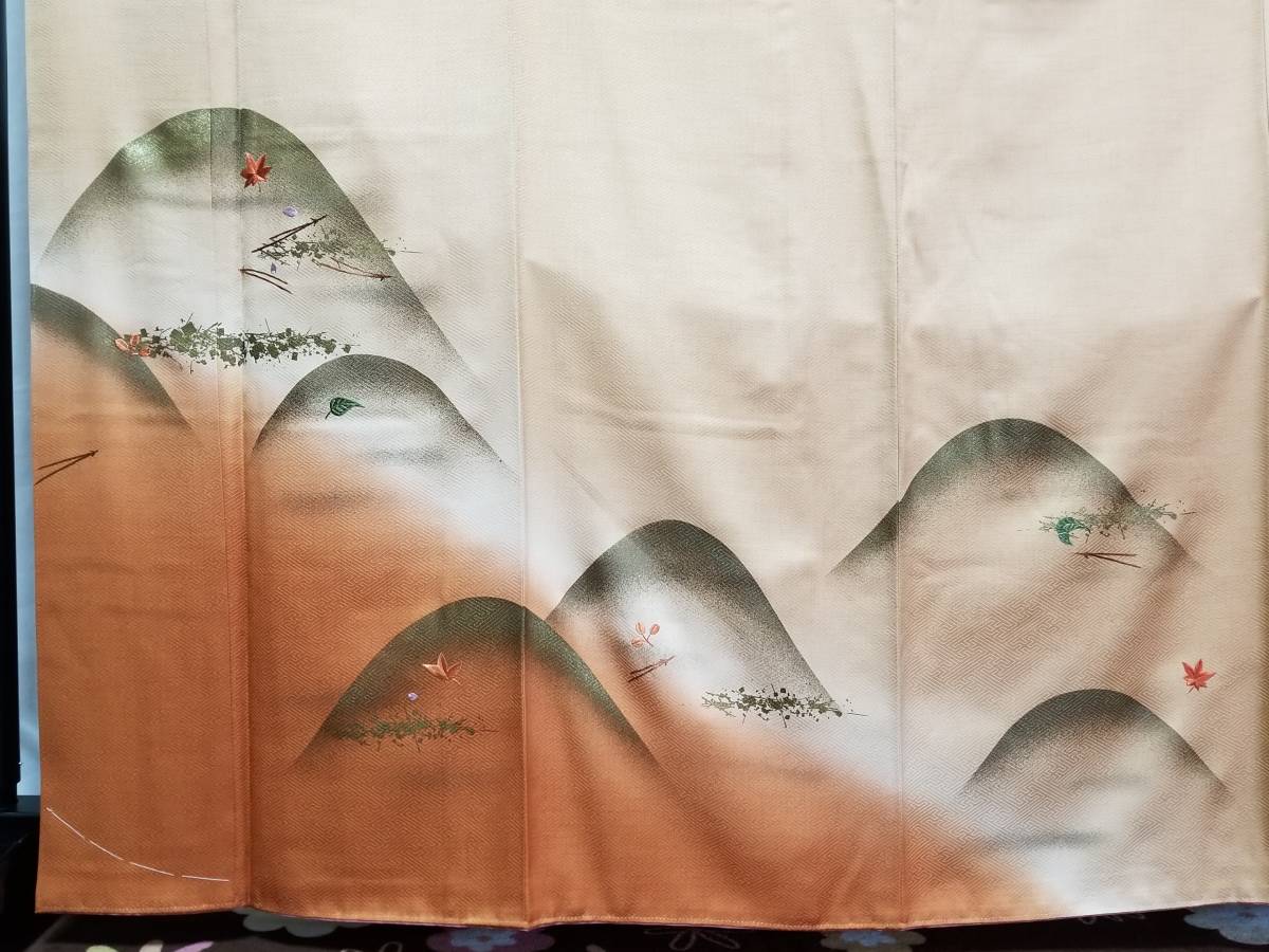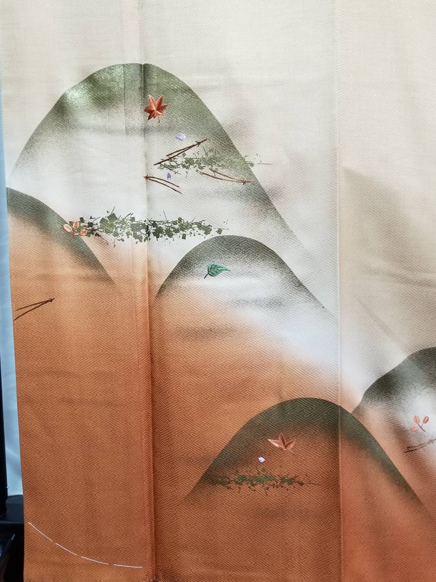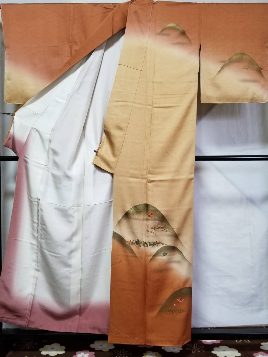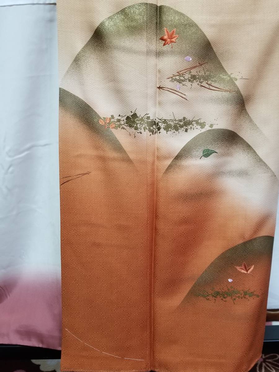 ☆新品 ☆仕付け糸付き ☆検品済 ☆美品 (生地) ○正絹 丹後織 紋意匠縮緬 重目地***綸子文と格子調の地紋 ○ツヤがあり.サラッとした手触り地*お体に沿いやすいです ○着物重さ 約 980g (地色) ○濃い赤みの黄色地{イエロ-オ-カ色に近い}***画像9*の地色が濃く写っぽくてます ○袖山*肩山の手暈し染色は.胡桃色{くすんだ黄赤色} ○裾の手暈し染色は.赤朽葉色{くすんだ黄赤色} ○高級感あるお色です (模様) ○金彩加工の山とカスミ文様 ○極細糸*微細手刺繍の楓*松葉*葉*花びら*小花 ○豪華な文様に仕上げております (胴裏地) ○正絹羽二重地(純白色) 重目地*美品 (八掛地} ○正絹精華縮緬地{梅鼠色*灰みの紫みを帯びた赤色*暈し染}*美品 (寸法) 身丈 (肩から裾まで) 約158cm (内あげ 前身 約13cm 後身 約13cm) 裄丈 約65cm (袖付縫い代 袖側 約2cm 身側 約2cm} 袖丈 約49cm 袖幅 約32.5cm 前幅 約24.5cm 後幅 約30.5cm *広衿(スナップ付) ◎消費税は.お預かりしておりません◎ ◎kirisyou317 桐徳 「呉服の桐正」でも色々と出品しております {注意事項} ★基本的に土、日、祝日、ゴールデンウィーク、お盆、年末年始はお休みさせて頂いておりますので、 ご連絡が遅れる場合もございますので、ご了承ください。 ★どうぞ自己紹介欄も、是非御覧になって下さいませ。 ●落札後にヤフーから届くメールに、メッセージを記載しておりますので、 そちらも必ずご覧下さいませ。 ●当方、ストア出品ではなく、一日中パソコンに向かっておらず、ご連絡は夜になる事が多いです。その点御理解の上、ご入札下さい。 ●お急ぎの場合など、到着希望の日にちが特に近い場合、ご要望にお答えできかねる場合もございます。もちろん、出来る限り、早急に対応はさせて頂きますが、 その点は、何卒ご了承下さいませ。 入札前に、発送が間に合うかご質問頂けるとありがたいです。 ★感じ方は、人それぞれ違いますので、くれぐれも繊細な方はご入札をお控え下さい。 ★新古品、中古品、アンティーク品に関しましては、特に気をつけて検品し、 当方で着用可能と判断した商品を、出品しております。発送前に陰干しもしております。 目に付いたしみなどがあった場合、記載しておりますが、古布(とくにアンティーク品) にはどうしても時代的な染みや小さい難はあります。(程度の感じ方には個人差があります。) 検品には注意をはらっておりますが、見落としがある場合もありますので、 used、アンティーク品へのご理解をお願いいたします。 古着物はどこかに(特に裏地には)なんらかの小難があるものと思っていただく方がよいと思います。 基本的に返品、クレームはお受け致しかねますので、その点ご理解下さい。 少しでも気になる事は、お気軽にご質問下さい。 ★★返品、クレームはお受け致しておりませんが、万が一、商品に不都合(大幅な寸法間違い 記載以外の着用不可能な位の、大きなシミ、傷みなどの見落とし)などがございました場合、まず、取引ナビにてご連絡下さいませ。 迅速に対応させて頂きます。 ただし ●商品がお客様の元に到着後、1週間以上経過したもの。 ●お客様側で加工など、手を加えた物。 ●お色目が、思っていたものと違っていた、または、思っていた感じと違っていた。 (画像はできるだけ実物に近い色で写るように努力していますが、素人の撮影ですので、どうしてもPCによって多少違ってくる事があります。 出来るだけ、分かりやすいように説明は入れさせて頂きます。分かりにくい場合、ご質問下さい。) 以上につきましては、対応出来ませんので、ご理解下さい。 ★複数商品の落札予定のある場合、ご連絡頂きましたら、1週間程でしたら、お取り置させて頂きます。 お気軽に、お申し出下さいませ。 ★送料は、1個で発送が無理な場合は、こちらよりご連絡させて頂きます。 | |||