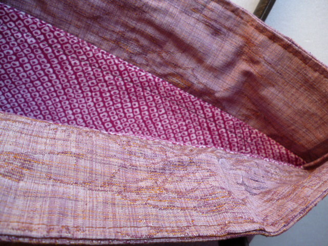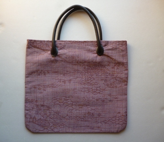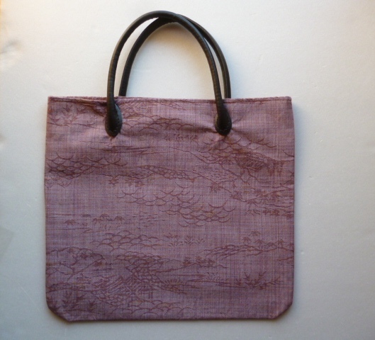 帯リメイク■バッグ■小豆色地に景色模様、和洋、A4着物