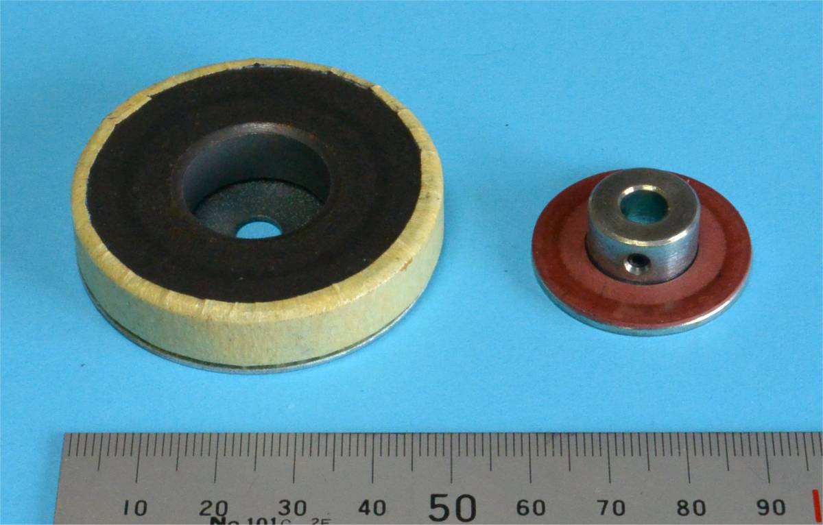 マグネットダンパとはリング状の永久磁石をモータ軸に直結した円盤に吸着させ磁石と円盤との摩擦抵抗で振動を抑えるものです。