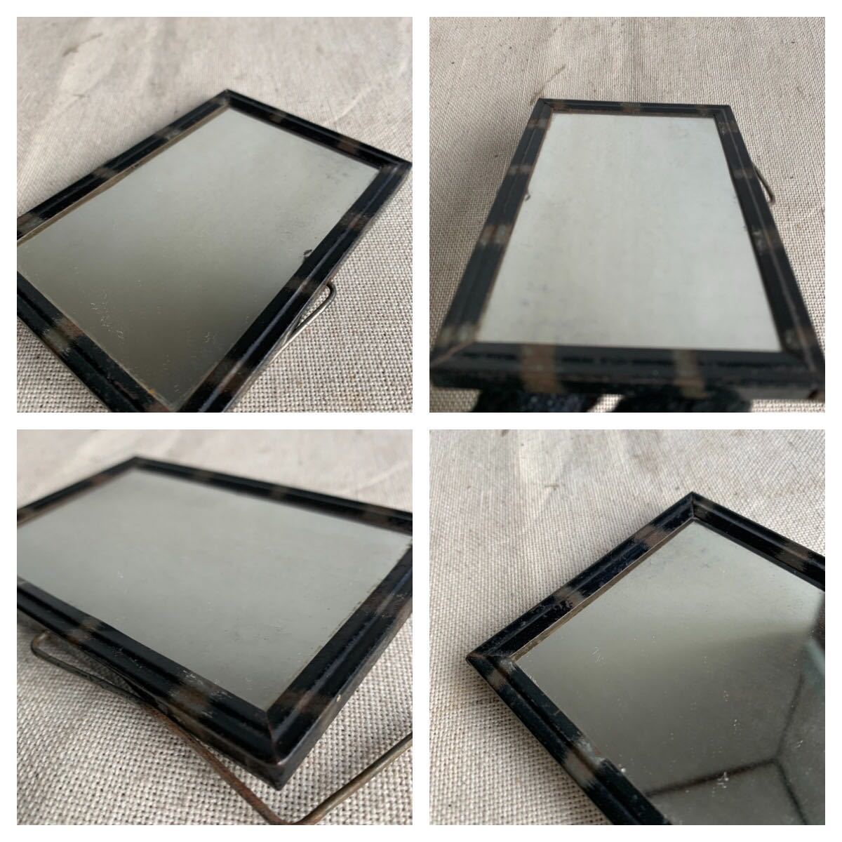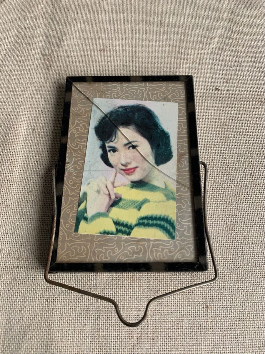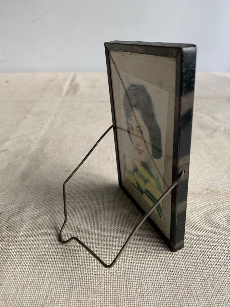 小さなスタンド式の鏡とブロマイド入りの写真立てです。表が鏡、裏が写真立てになっています。お部屋のインテリアやお店のディスプレイにいかがでしょう。