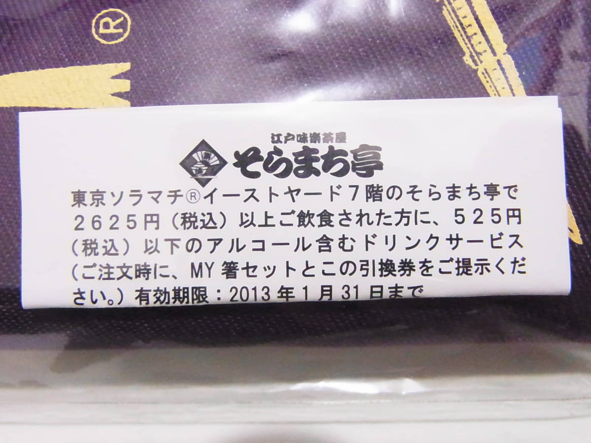 新品 江戸味楽茶屋 そらまち亭 箸&箸袋 東京ソラマチ MY箸セット 送料180円~ | ||||||||||||||||||||||