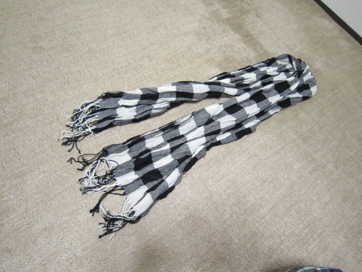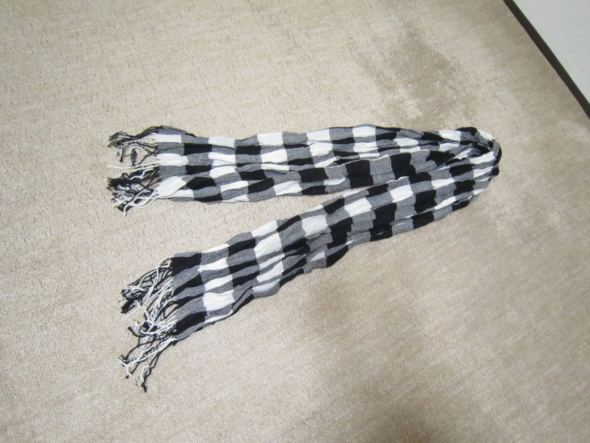 マフラー チェック柄 ブラック ホワイト 155x63cm