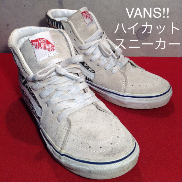 【売り切り!!送料無料!!】A-59 中古激安!! VANSハイカットスニーカー ホワイト 24.0cm 箱無し!