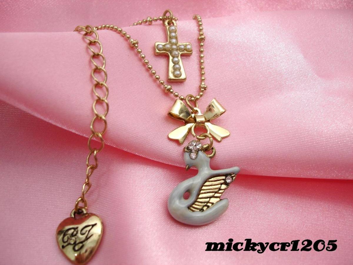 新品本物■アメリカブランド BETSEY JOHNSON【ベッツィージョンソン】白鳥&クロス ネックレス■一点のみ
