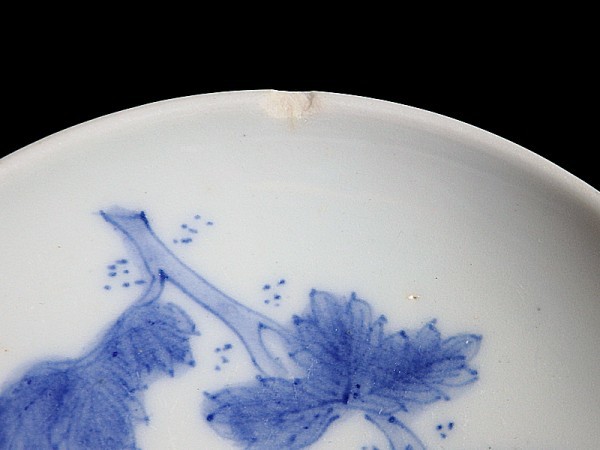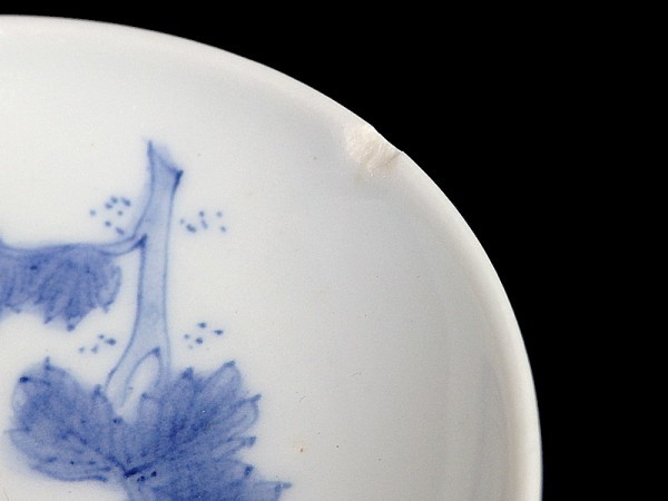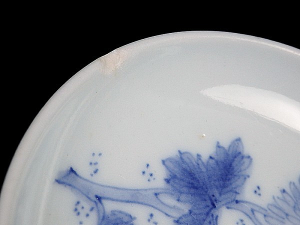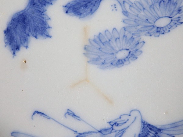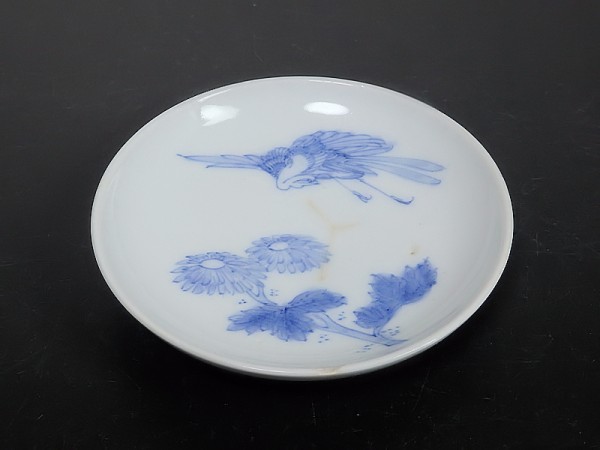 【金継材料】 347 古伊万里 染付 鶴に菊の図 手塩皿