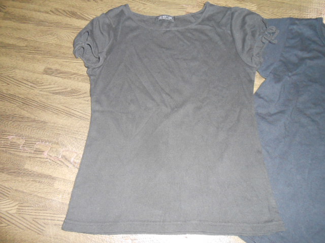 こちらはMサイズのジルのTシャツとLサイズの袖リボンのしまむらの黒カットソーです。