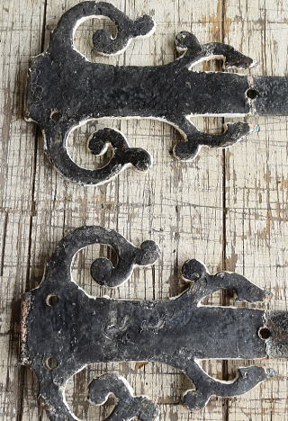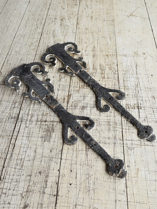 イギリスの蚤の市で見つけてきた 古い、鉄製の建具装飾金物×2 です。 使い込まれた風合いがとても素敵です、 大きなダメージなく コンディション良好です