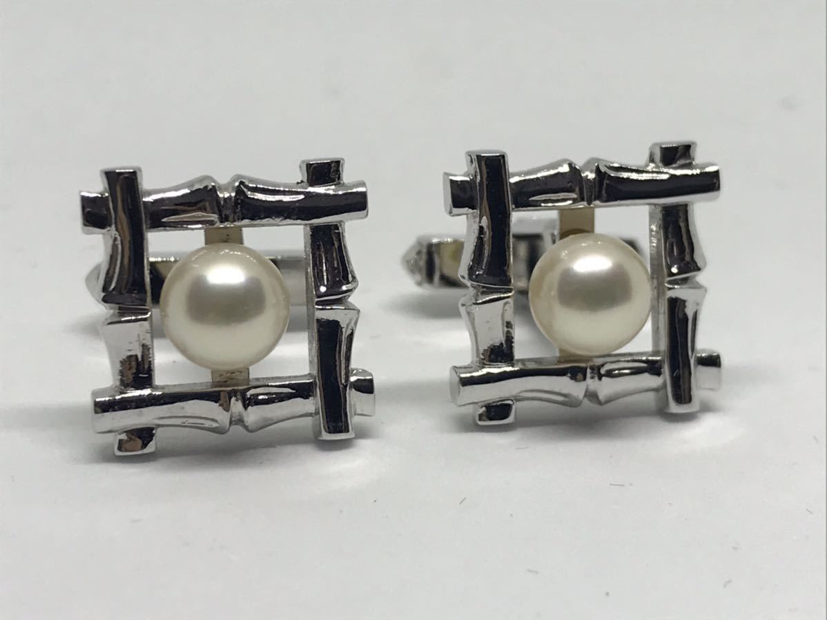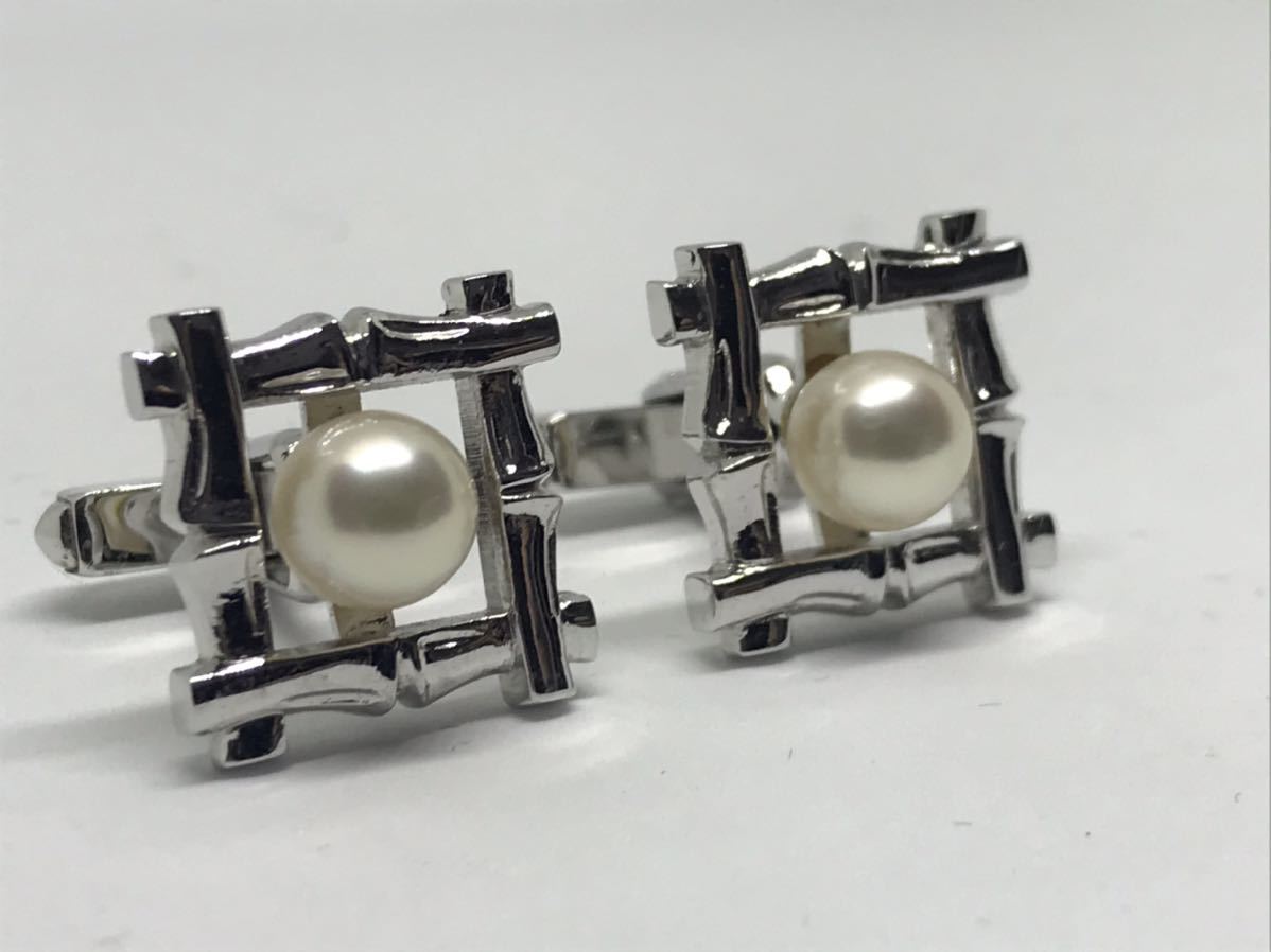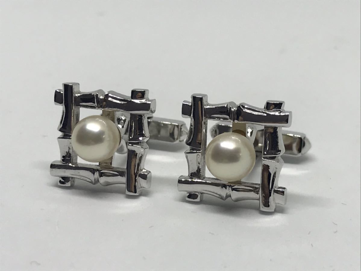 シルバー 真珠 パール デザイン カフリンクス カフス