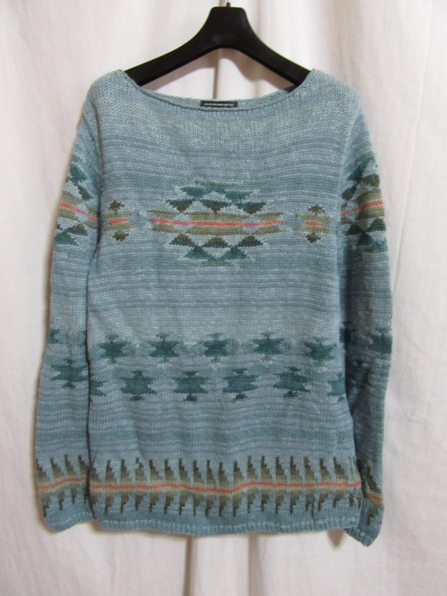 ★ブランド名 Lauren by Ralphlauren ★ブランド説明 ラルフローレンとは、1968年デザイナーのラルフ・ローレン(Ralph Lauren)氏が自身の名を冠したブランドを設立しました。イギリスの伝統的なファッションをアメリカ流にアレンジした、アメリカントラッド、アイビーファッションの中心的なブランドです。Polo by Ralphlauren,Purple Label,Black Label,RRL,RLX,ポロスポーツ,ポロジーンズ,RUGBY,DENIM & SUPPLY,CHAPS,レディースラインのLAUREN by RalphLauren,などがあります。 ★アイテム名 セーター ★表記サイズ M ★実寸サイズ 肩幅41cm身幅49cm着丈67cm袖丈67cm ※多少の誤差はご理解お願いします ★説明 ラルフローレンのローレンラインのニットです。ネイティブ柄に編み込まれたボートネックデザインのハンドニットになります。リネンコットンです。お好きな方いかがですか? ★商品状態(5段階) 『B』 『A』USEDですがとてもきれいな状態 『B』使用感はあるが目立つダメージのない状態 『C』使用感、部分的に汚れやダメージのある状態 『D』 特に使用感や汚れ、ダメージがある状態 『E』 新品 or 未使用品 『B~D』は汚れや傷の有無を確認お願いします ★傷の有無 多少の使用感はありますが問題無く着ていただけます。 ★素材 リネン55パーセント コットン45パーセント ★カラー ブルー系 ★生産国 中国 ☆★☆★☆★☆ 全品送料無料 ☆★☆★☆★☆ ※必ずお読み下さい。 北海道、沖縄、離島の方は別途料金が発生する場合がございます。商品によっては無料で発送できる物もございますので、必ず質問欄よりお問い合わせをお願いいたします。されずに購入された場合は同意されたと判断し、ゆうパック着払いで送らせていただきます。その他の発送方法は受けつけませんのでご理解お願いいたします。 ☆発送方法は当社指定のものに限らせて頂きます。日にち時間指定は可能ですが、発送業者は選べませんのでご注意下さい。 ☆主な発送業者はヤマト運輸、佐川急便のどちらかになります。 ※予告なく変わる場合もございます。 ☆半袖Tシャツ、半袖シャツ、に関しましてはネコポス便になります。気になる方は予め質問欄よりご質問お願いします。 ※厚みが超えて発送不可なものは宅配便で発送します。 ☆時間指定:午前中、14~16時、16~18時、18時~20時 からお選び頂けます。 ※ネコポス便は時間指定はできません。 ☆発送物が多く、その他の発送方法は一切お受けしておりませんので予めご理解お願い致します。 ☆全般的に古着にご理解の頂ける方のみご入札お願いします。 ☆ノークレームノーリターンでお願いいたします。 ☆注意事項☆ お荷物の発送等が多くご連絡、ご返信が出来ない場合がございます。 ご入金の確認、発送は土日祝以外はほぼ毎日行っておりますので 返信がなくても確認ができましたら早ければ落札の次の日には発送できます。 発送後のご連絡は必ず行いますが、ご希望の方以外にはこちらから追跡番号をお伝えする事はありませんのでご了承下さい。 商品の検品等は万全を期しておりますが、 万が一商品に問題がありましたら評価からではなく、 必ず取引ナビよりご連絡いただけますようお願い申し上げます。 ☆最後までお読み頂きありがとうございます!お買い物してよかったと思っていただけますよう努めてまいります。宜しくお願いします。 | ★ | |||||||