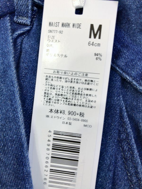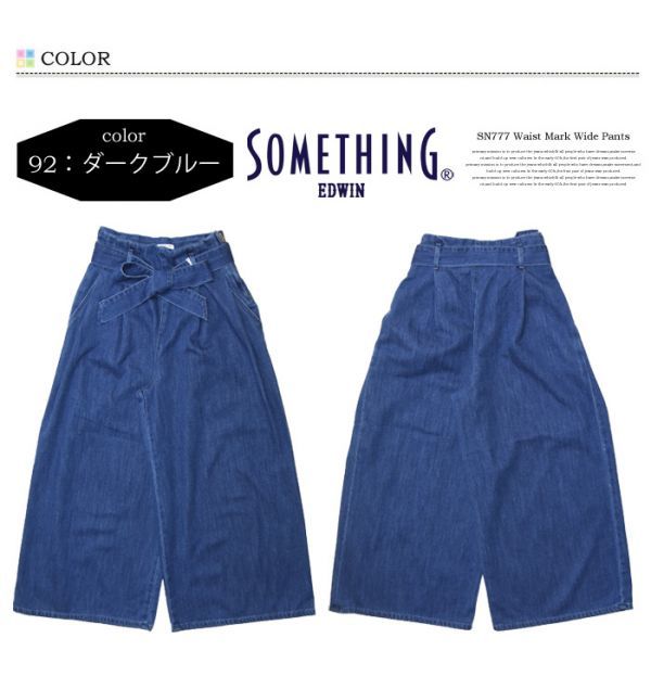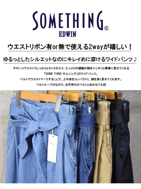 新品 定価9,790円 日本製EDWIN エドウィン SOMETHING サムシング ワイドパンツ ベルト付き SN777 ダークブルー M