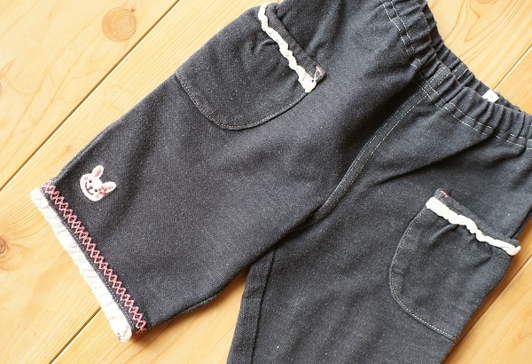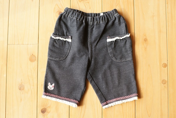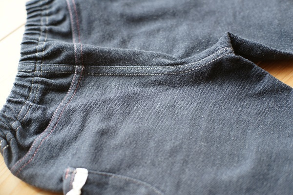 サンカンシオン ショートパンツ 黒っぽい濃紺のデニム調ズボン。
