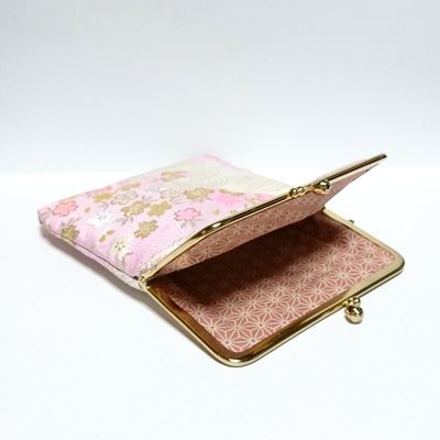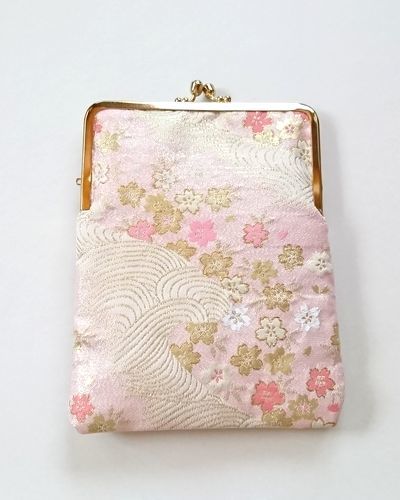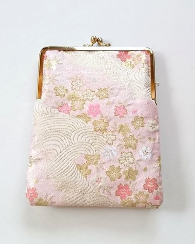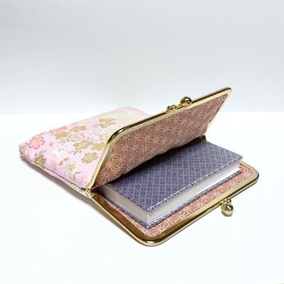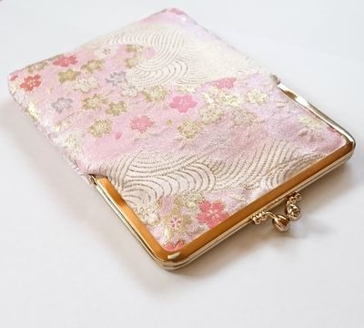 ●櫻●手作り【がま口】御朱印帳入れ♪西陣織♪GN01:和風、和柄、和装の御朱印帳ケース。文庫本サイズでマルチケースとしても使用。