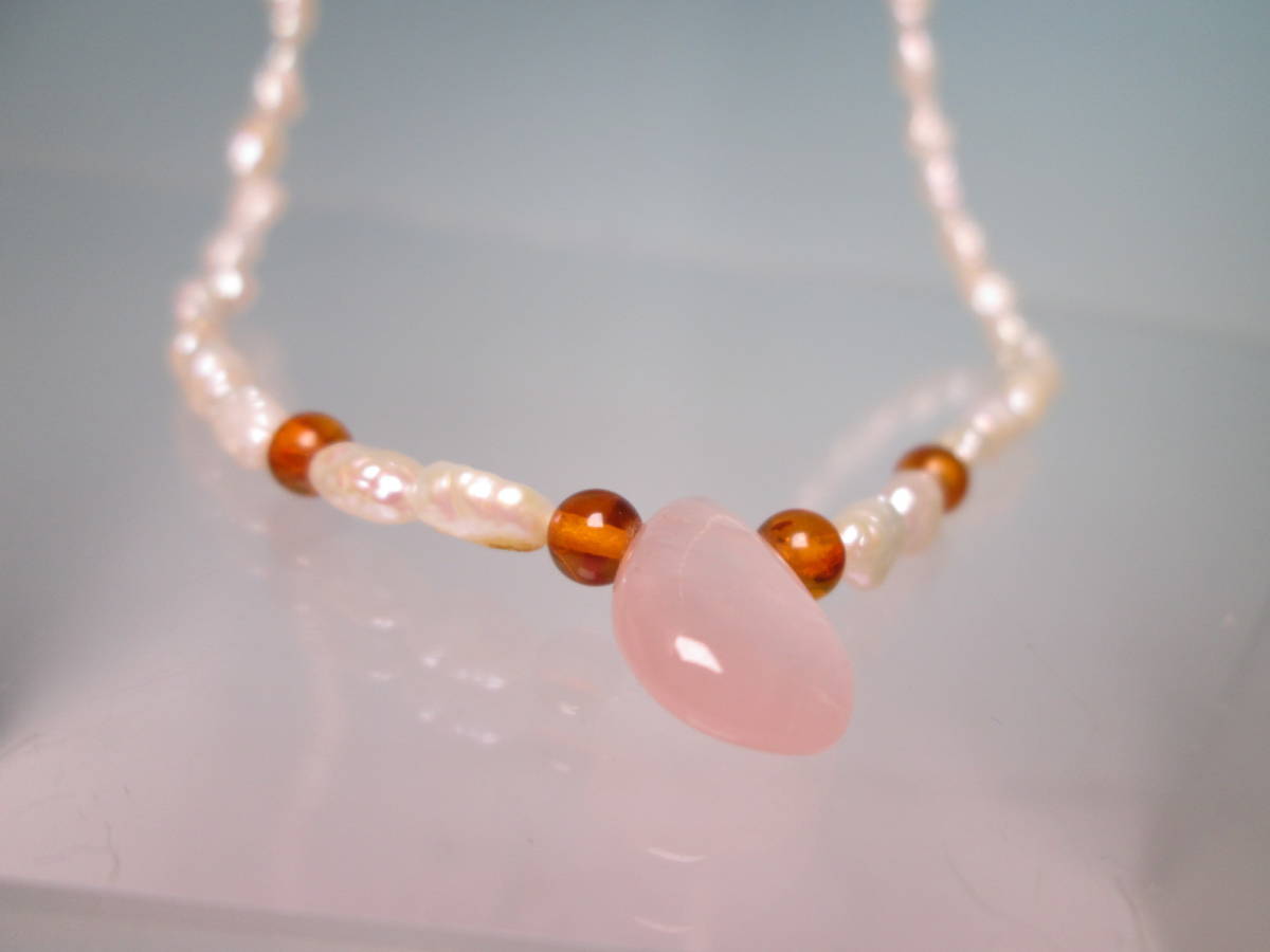 サイズ 中央の紅水晶 9,5mmx1,4cm ネックレスの長さ 43,5cm