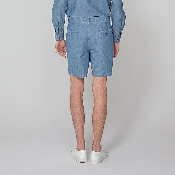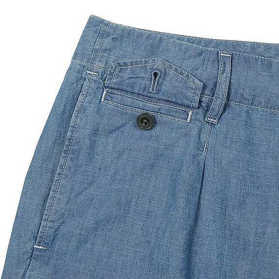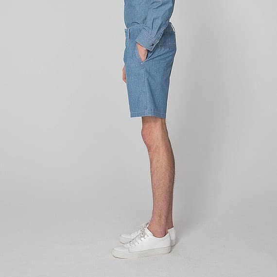 色身も風合いも爽やかで軽やかなシャンブレー素材を使ったショートパンツ。