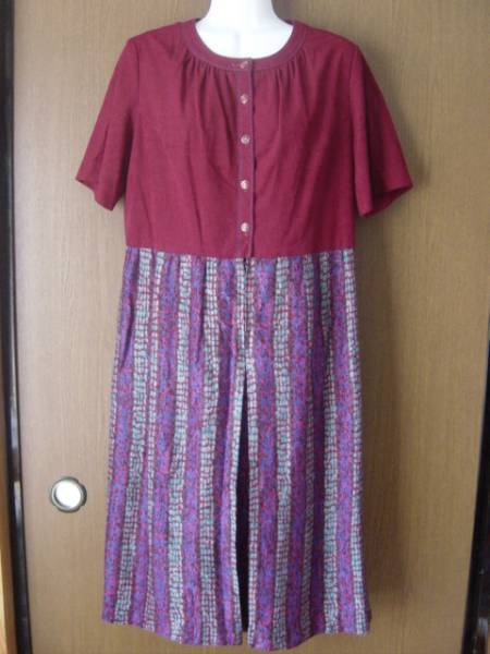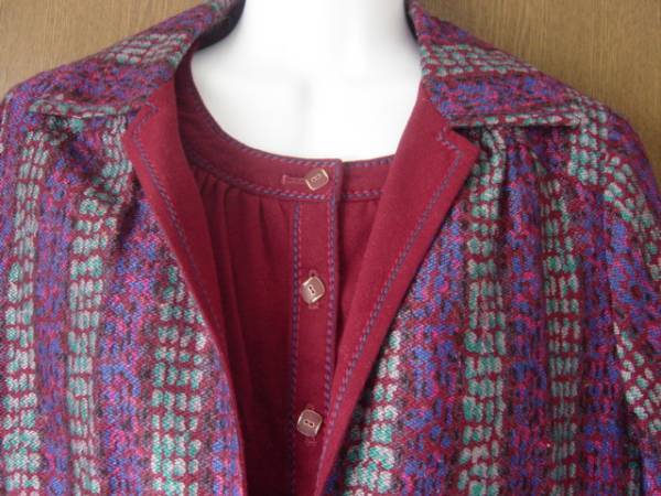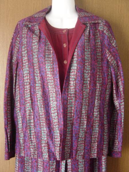 13号★ステッチと色柄が素敵★ワイン地基調上質ワンピ&ジャケット