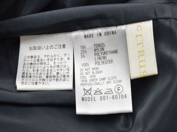 | (表地)指定外繊維(テンセル)70% ナイロン25% ポリウレタン5% (裏地)ポリエステル100% | |||||||||||
