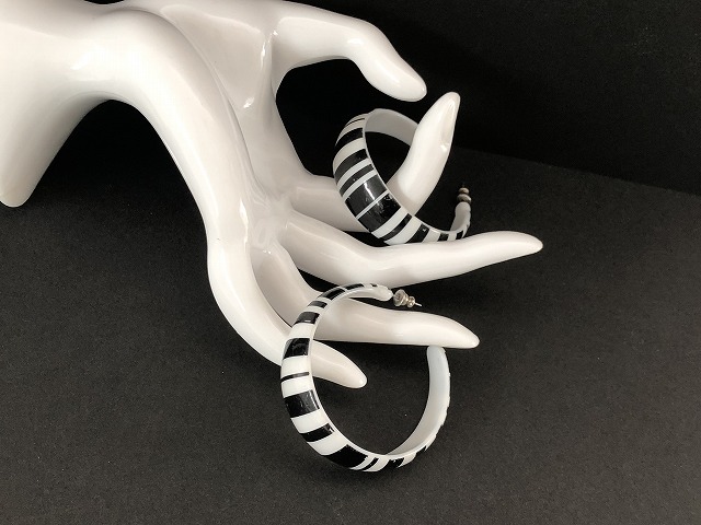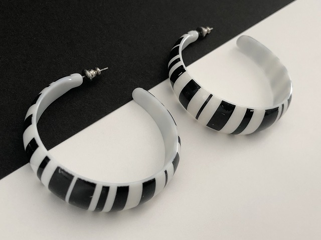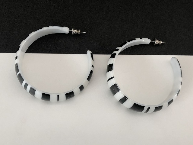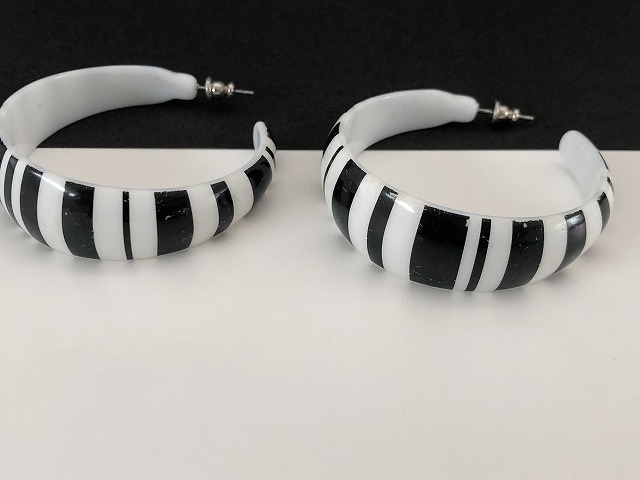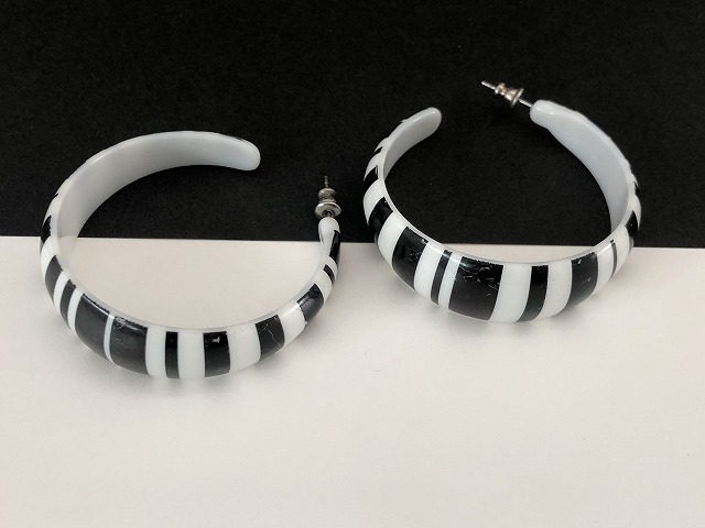 ブラック ホワイト ボーダー 大ぶり フープ ピアス USA [ap-278] ヴィンテージ